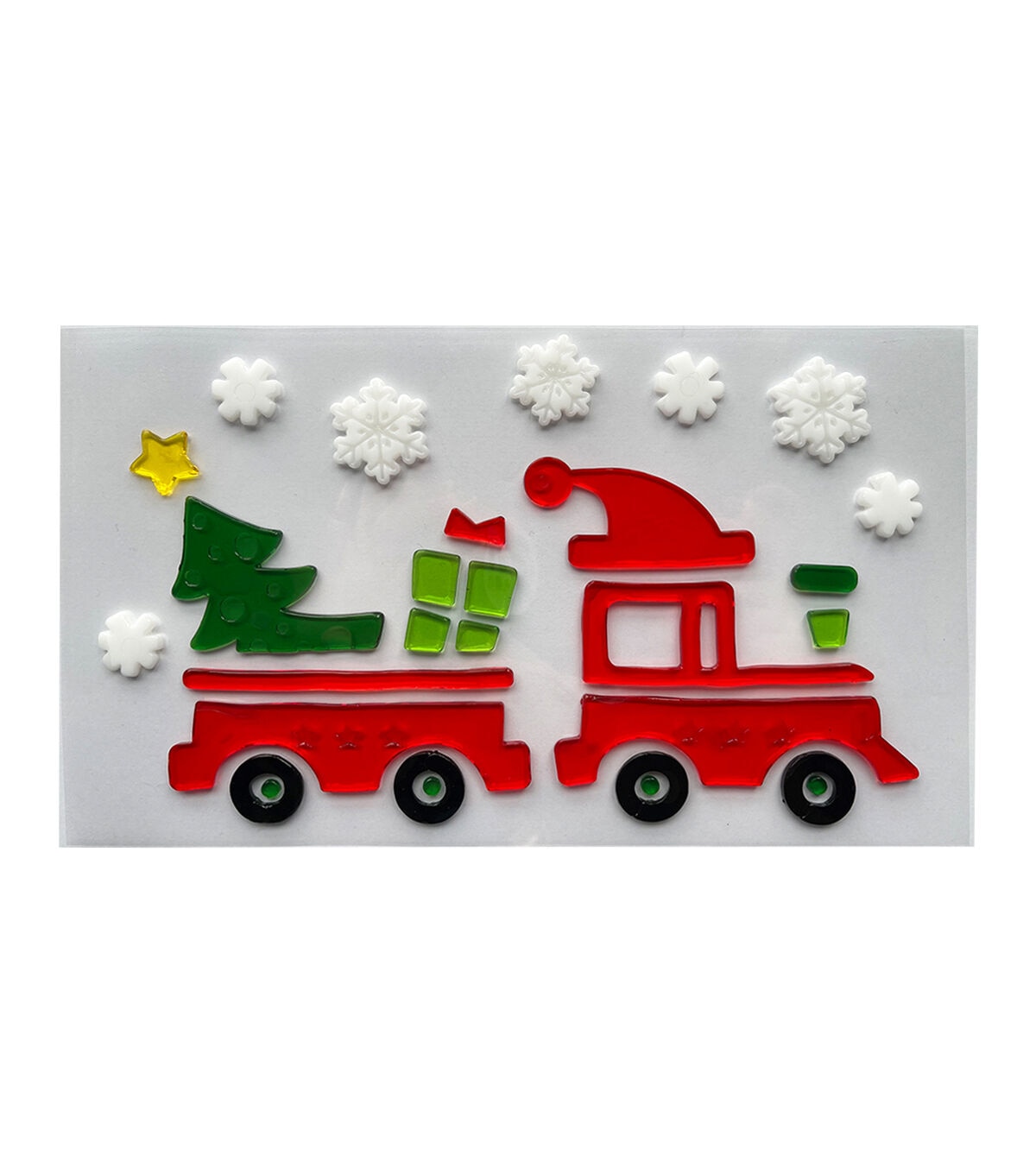 Your little ones will have fun decorating their room with the Christmas Red Truck Gel Clings by Place & Time. This pack contains gel clings shaped like snowflakes and a red truck carrying a spruce tree and a wrapped gift. They can add these gels clings to windows, glass doors, tables and more.