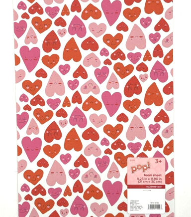 Crafting possibilities are endless with the Valentine's Day Hearts on White Print Foam Sheet by POP! It sports a white shade and a print of hearts sporting red or pink shades with a blushing smiley face. Cut this felt sheet into pieces and use them to adorn DIY headbands, scrapbook covers, photo frames and more.