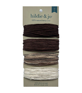hildie & jo-100% Natural Hemp Cord: Earthy. Hemp is biodegradable and an Earth-friendly alternative to other synthetic cording for jewelry, crafts, scrapbooking, fashions and more. This package contains one card of 120 feet of 20lb hemp: 30ft each of four colors: dark brown, med brown, variegated and natural. Imported.