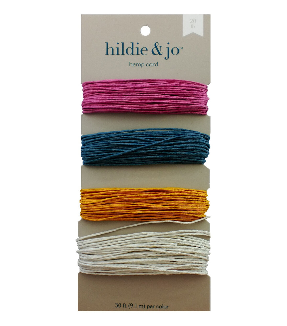 hildie & jo-100% Natural Hemp Cord: Spring. Hemp is biodegradable and an Earth-friendly alternative to other synthetic cording for jewelry, crafts, scrapbooking, fashions and more. This package contains one card of 120 feet of 20lb hemp: 30ft each of four colors: pink, blue, orange and white. Imported.