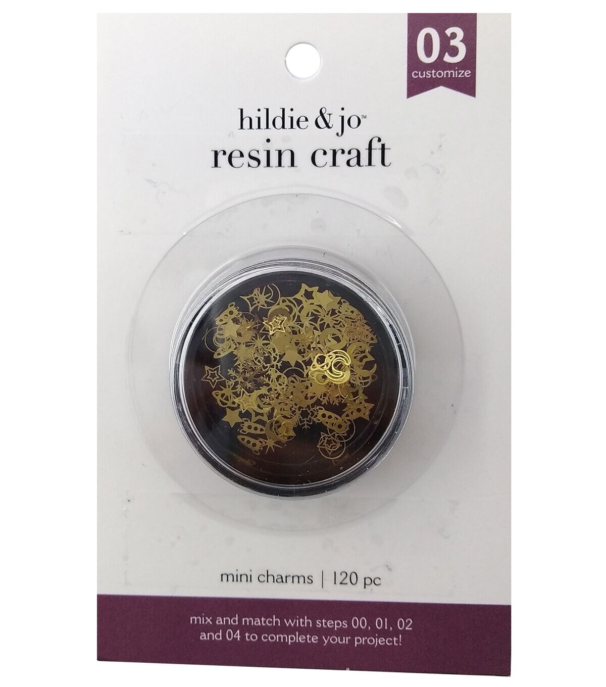 Make a statement with your resin craft using these metal mini charms to create a unique piece. There are 120 mini charms in all, each one is in gold. There are moon shapes, star shapes, planet shapes, spaceships and more. Use these to customize your resin craft. Resin crafts have four easy steps: select mold, pour resin, customize, cure. Create your own unique piece!