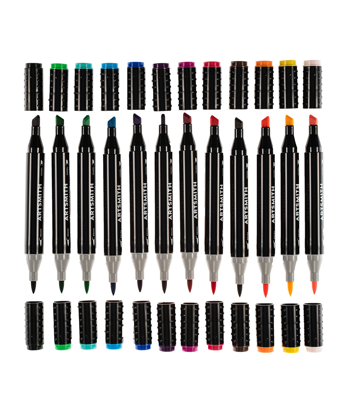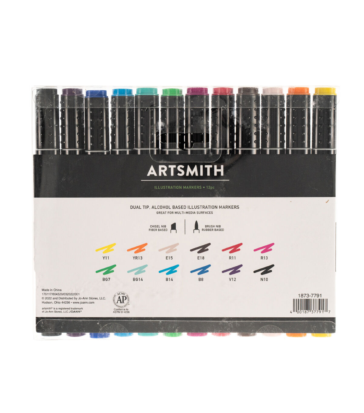 Artsmith illustration markers combine vibrant, easy flowing inks with dual nibs, making them ideal for coloring on canvas, paper, art boards, and other surfaces. This 12pc set includes Oxford Blue B8, Gulf Blue B14, Mantis Green BG7, Mint BG14, Pale Pink E15, Coffee E18, Black N10, Red Rose R11, Plum R13, Violet V12, Canary Y11 and Pumpkin YR13.Quick Drying & Non Smearing