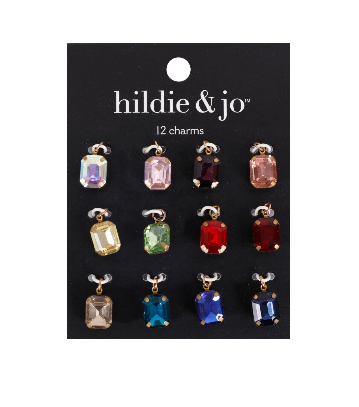 Give an elegant touch to your jewelry projects with the hildie & jo Square Charms-Rainbow Crystal. You can use these lovely charms in assorted hues to decorate bracelets, chokers, neckpieces, keychains and more. This pack comes with 12 charms that have jump rings for easy attachment.