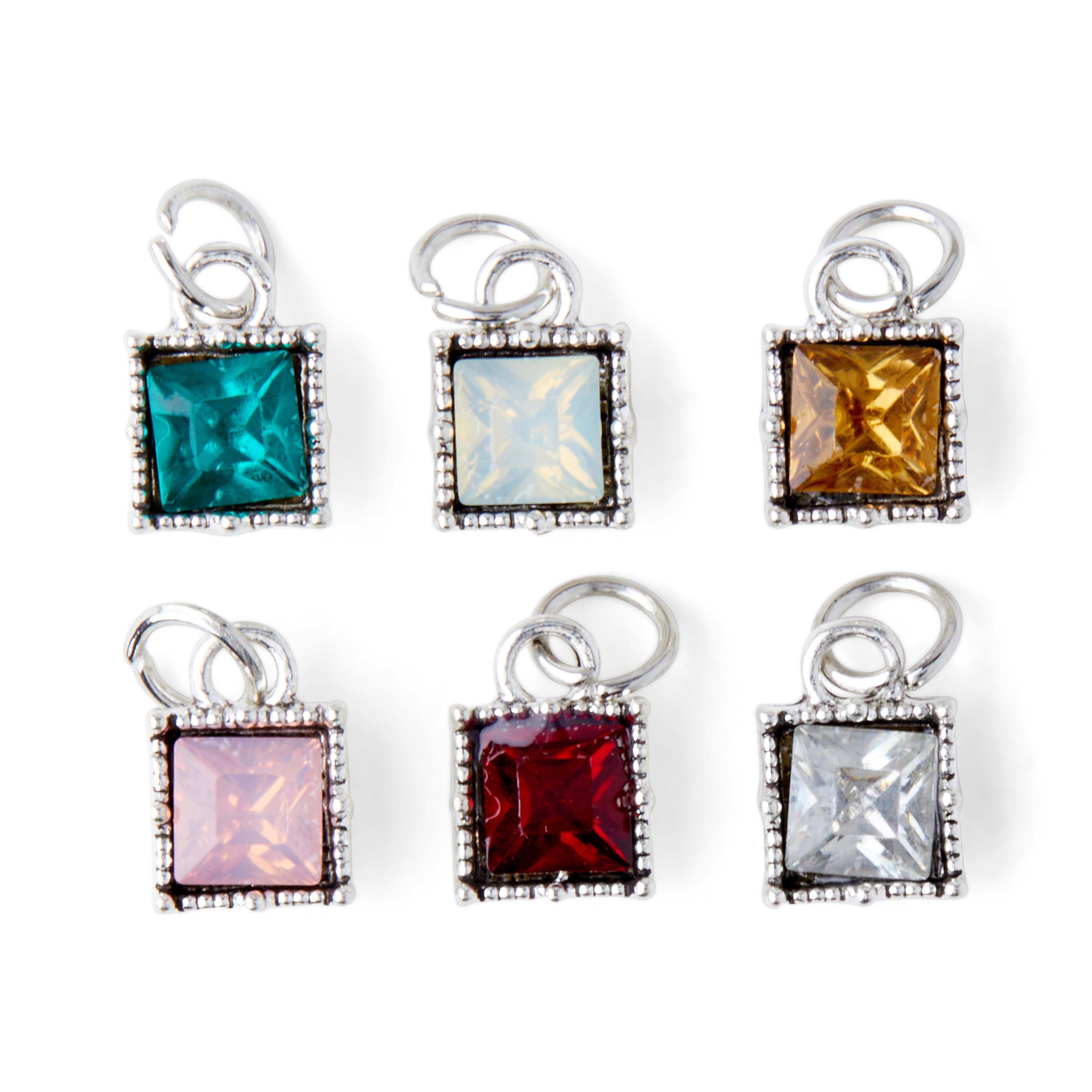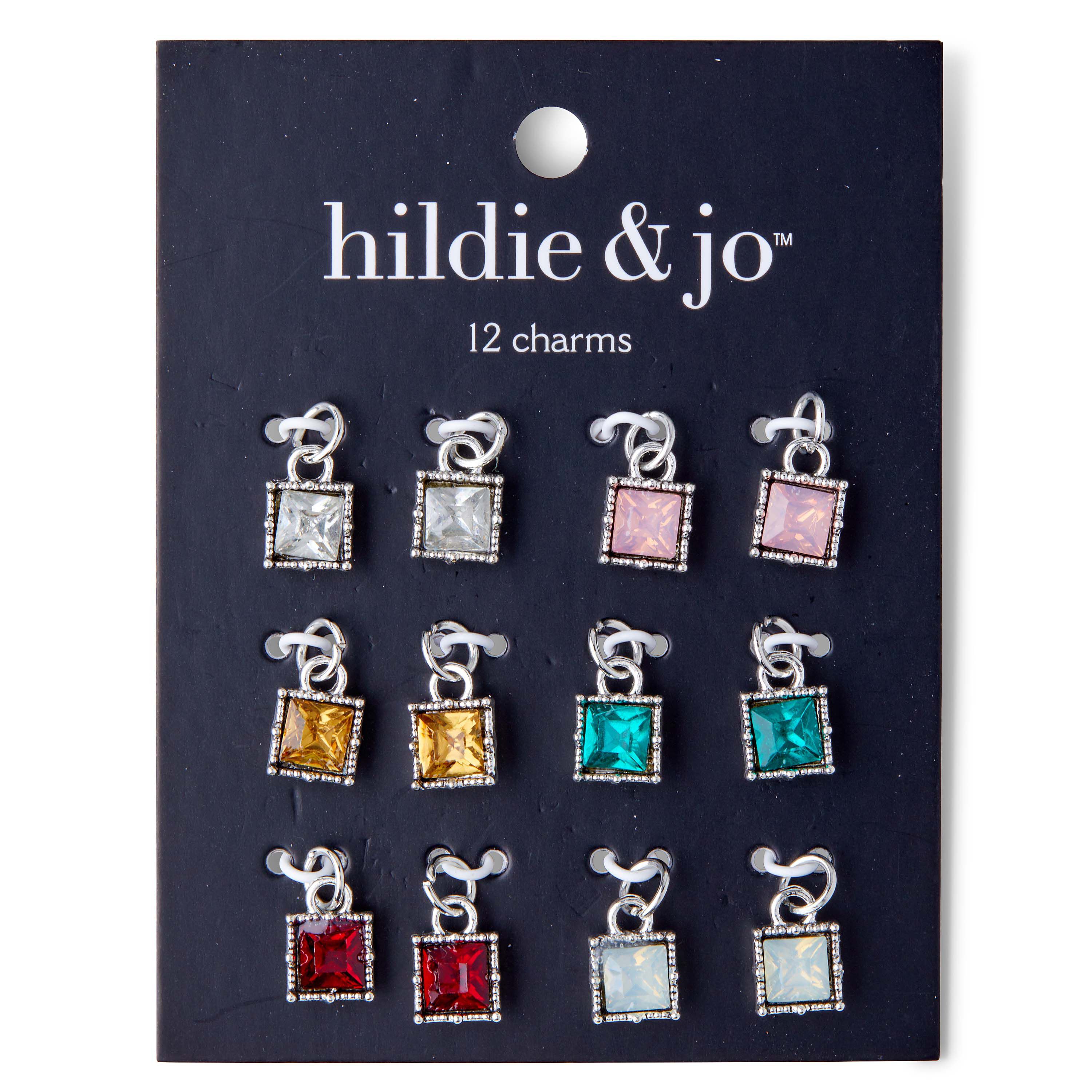 Add a dash of twinkling charm to your jewelry with the hildie & jo Symbolize Zinc Alloy & Glass Square Charms. These sparkly glass charms come in a set of 12, including two each of six colors.