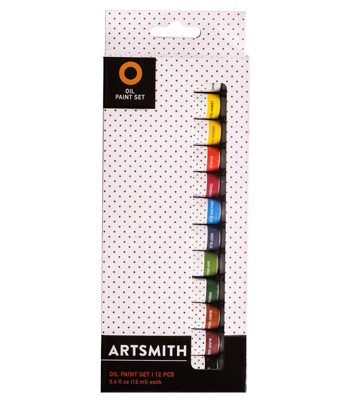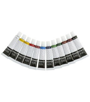 This economy oil paint set is perfect for students and value-conscious artists. The set contains twelve 12ml tubes of colors. It includes White, Lemon Yellow, Yellow Ochre, Vermilion, Crimson, Cerulean, Ultramarine, Sap Green, Viridian, Burnt Sienna, Burnt Umber, and Lamp Black.
