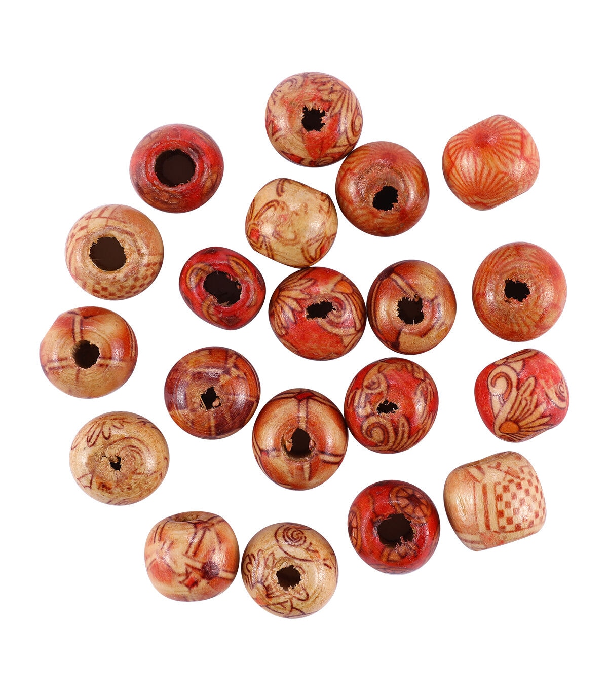 The hildie & jo Large Hole Printed Wooden Barrel Beads - Red & Natural will come in handy for creating beautiful craft projects. These wooden beads sport beautiful patterns and will add an interesting touch to your handmade designs. You can string them together to create lovely bracelets, anklets or necklaces. They will also be perfect to make curtain tiebacks, keychains and more.