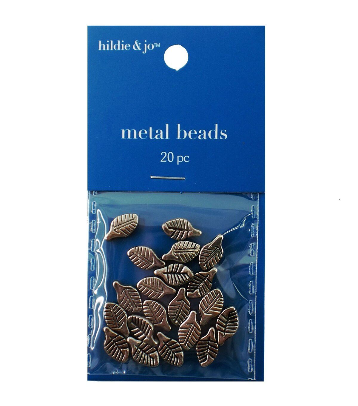 Design one-of-a-kind jewelry pieces and accessories using the hildie & jo Metal Leaf Spacer Beads - Silver. This pack includes 20 spacer beads made of metal. The beads are shaped like leaves and sport a silver tone. You can pair them with coordinating metal or glass beads to design bracelets, backpack charms, keychains, neckpieces and more.
