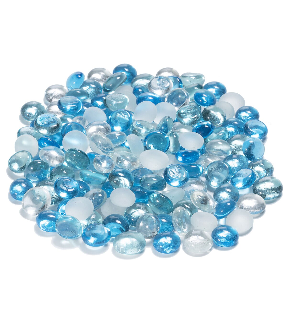 The Bloom Room Glass Gem Mix - Seaside will make a great addition to your decor supplies. This bag contains 12 pounds of a mix of blue, frosted white and clear glass gems. Team them with floating candles and add them to an artificial water fountain to create a lovely centerpiece for your indoor garden. You can use them to anchor flower arrangements or add more weight to a vase for stability. These gems will add depth and interest without distracting from the floral arrangement. Place them in pots, planters, terrariums or aquariums.
