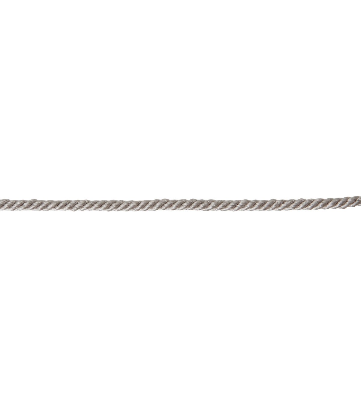 This silver grey 3/16" twist cord can be used for craft, apparel trim or home décor. Made of a polyester/cotton is can be washed.