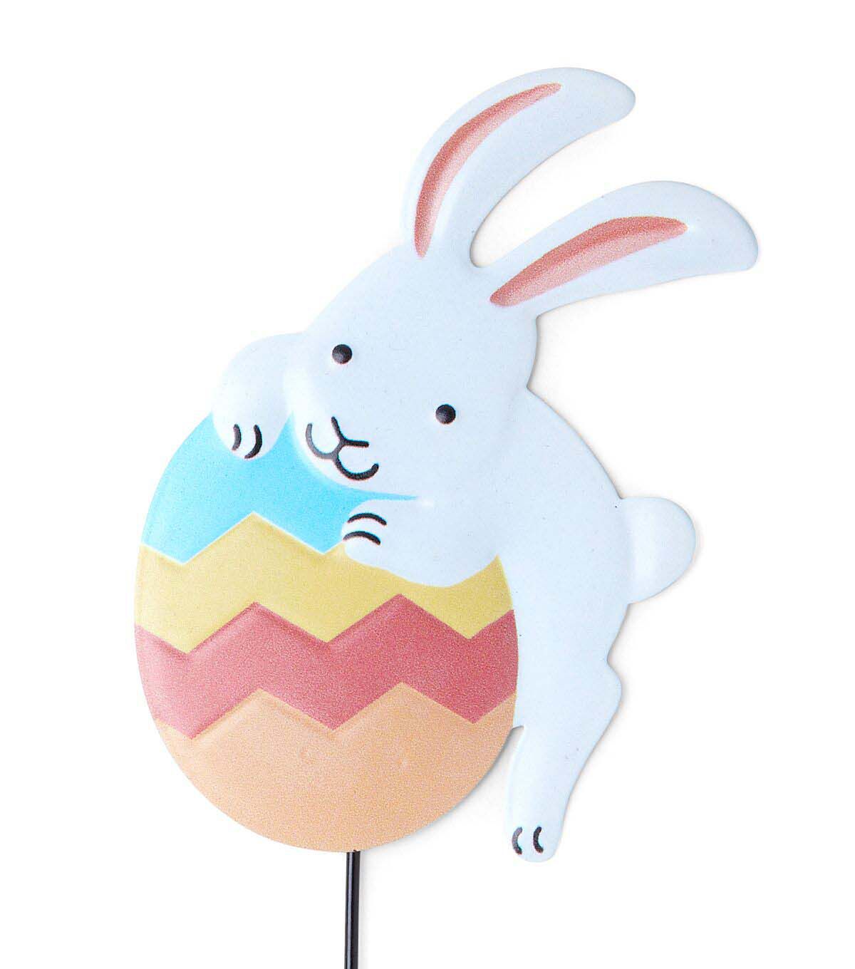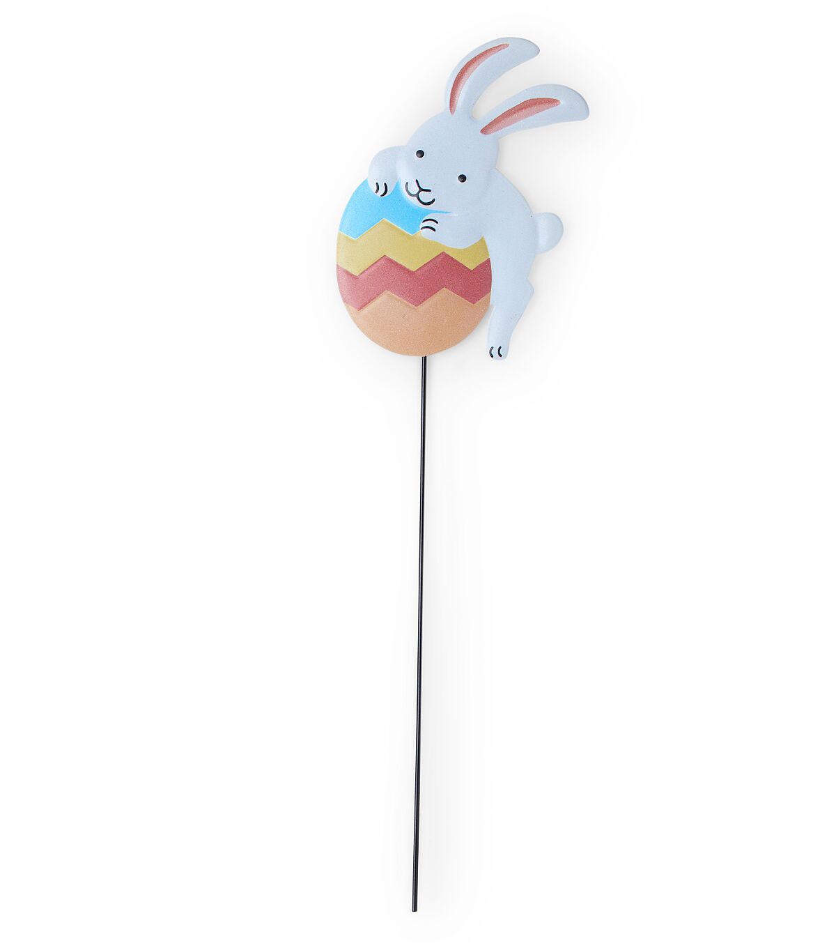 Give your Easter yard or garden decor added festive charm by decorating it with the Easter White Iron Mini Bunny Yard Stake by Place & Time. This yard stake is designed with an accent shaped like a colorful egg with a bunny on top of it. Use it as a standalone piece or adorn it with string lights for enhanced visual appeal.
