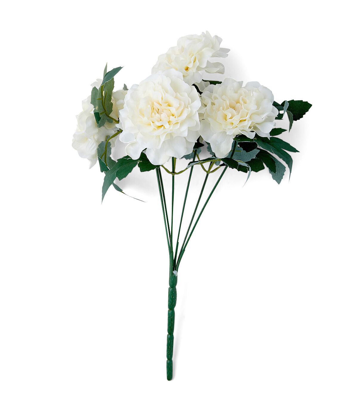 Enhance your seasonal floral display with the Spring Cream Peony Bush by Bloom Room. This faux floral bush bears lifelike peonies in a cream hue and leaves. Place it in a glass vase and use it to enliven any table, windowsill or the mantel. You can also team it with floral stems in coordinating colors for added charm.