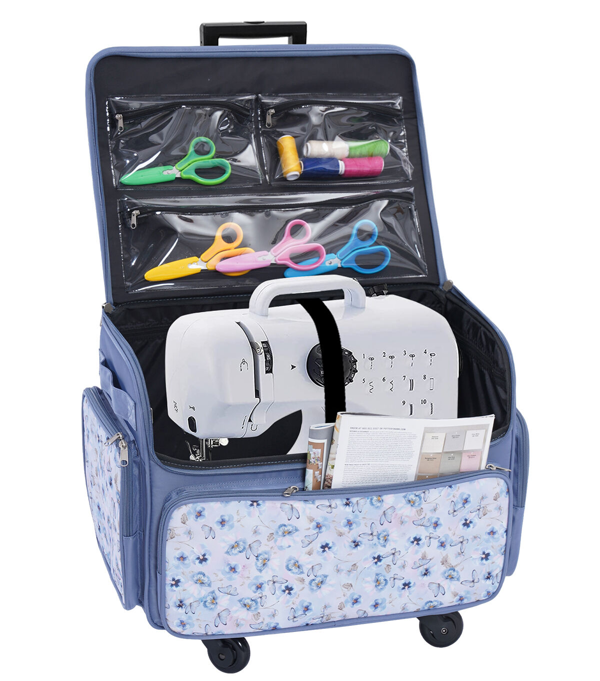 Stay Organized on the Go with the 13" x 18" Lilac Butterflies Rolling Sewing Storage Tote by Top Notch