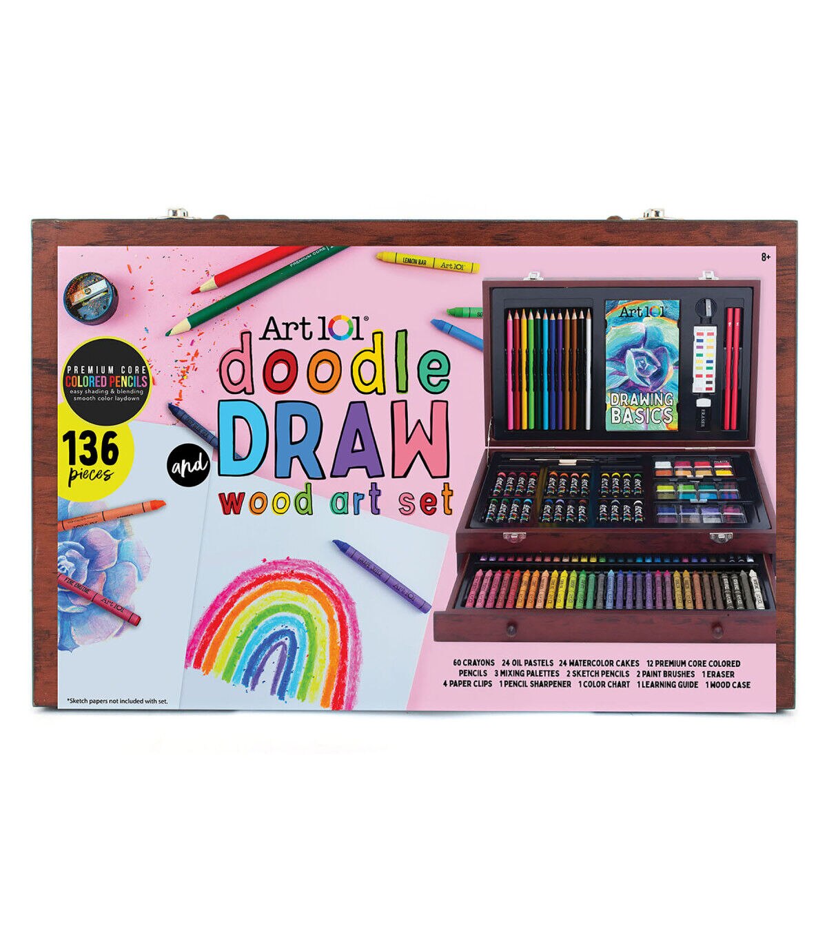 Art 101 Doodle & Draw 136-Piece Multimedia Wood Art Set