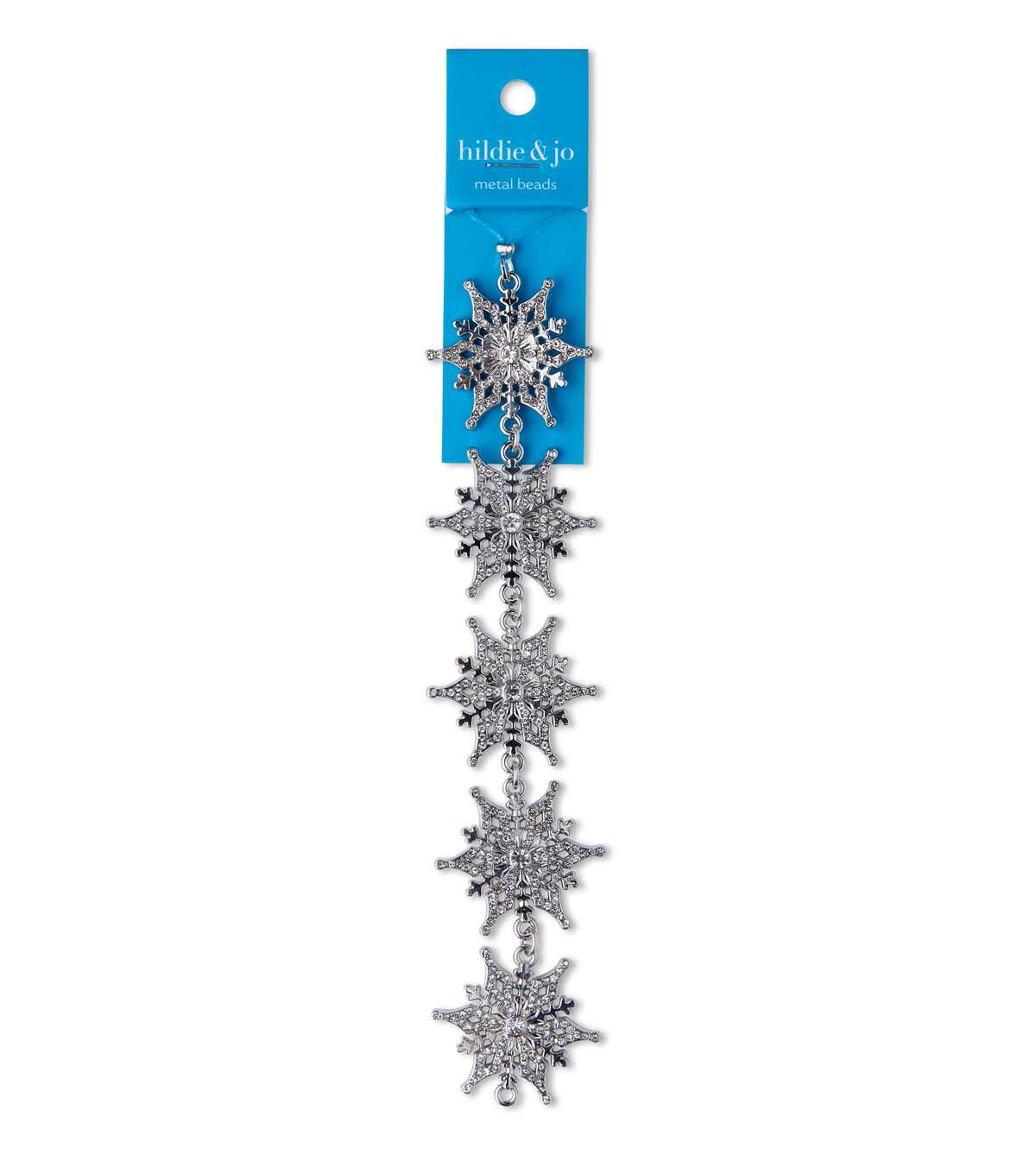Create unique pieces of jewelry using the hildie & jo Metal Snowflake Strung Beads and gift them to your family or friends this Christmas. Beads intricately designed to look like snowflakes and sporting a metallic finish are included in this strand. You can use them to design beautiful necklaces, bracelets and keychains. Each of these charms is attached to jump rings that make adding them to chains and connectors easy.