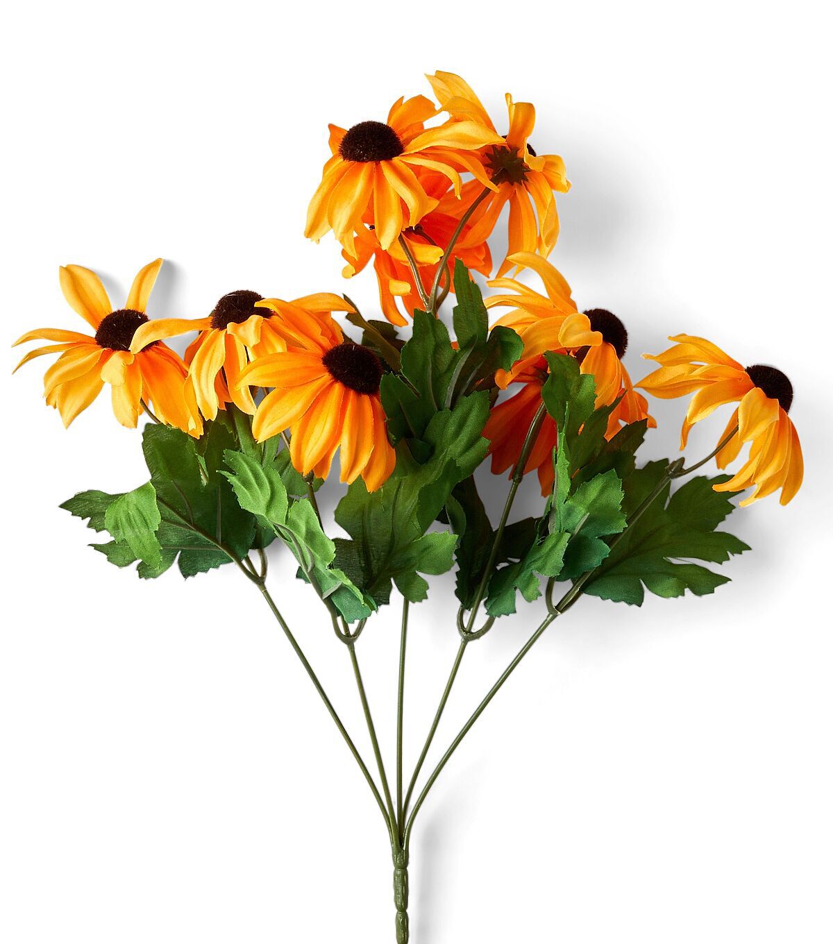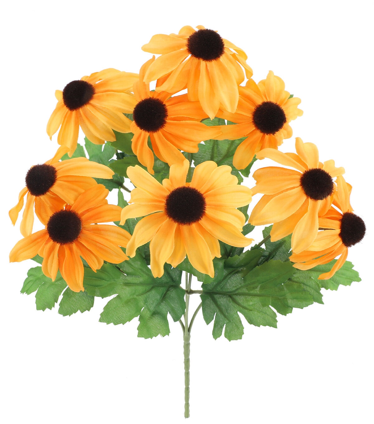 Enliven your springtime home decor with the Summer Yellow Black Eyed Susan Bush by Bloom Room. This beautiful faux bush is crafted with black-eyed Susan blooms in a bright yellow shade and leaves in green. It will make the perfect standalone display for your entryway table. You can also team it with a hydrangea floral bush in white and showcase them on the center table.