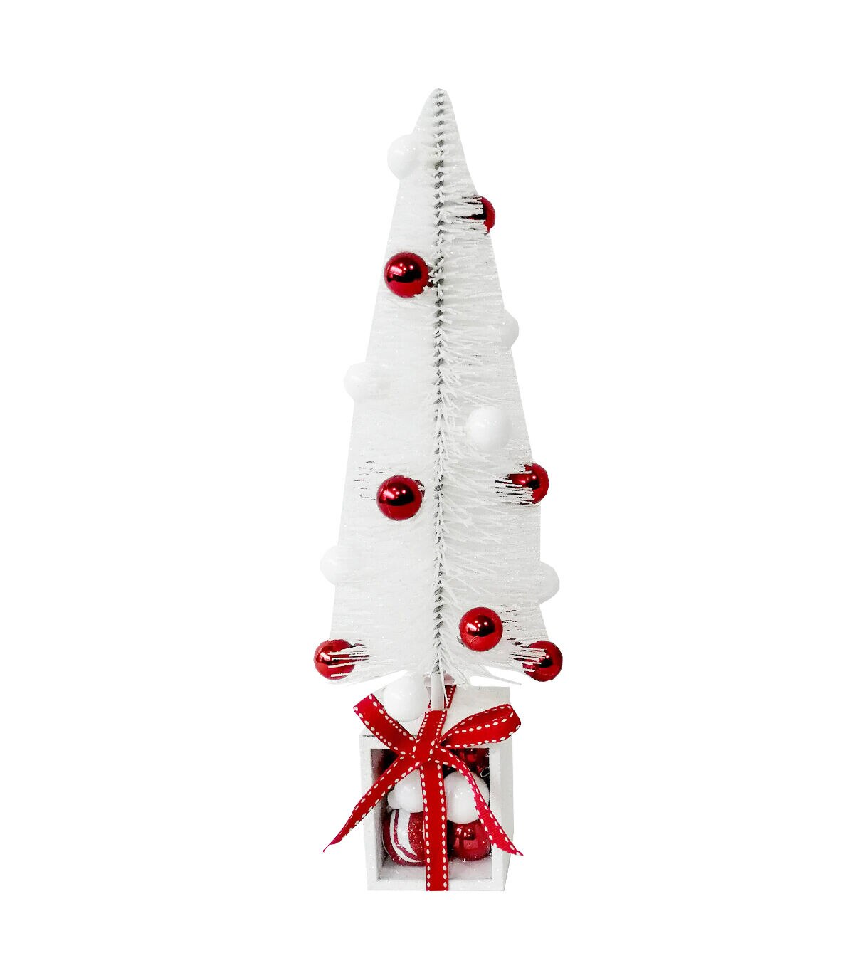 Give any table or shelf a festive look with the Christmas Red & White Sisal Tree on Present by Place & Time. Sporting Christmassy hues of white and red, this faux sisal tree arrangement will blend right in with your holiday decor. It stands on a gift box filled with ornaments and looks realistic. You can also team it with other winter-themed decor accents to create an eye-catching display.