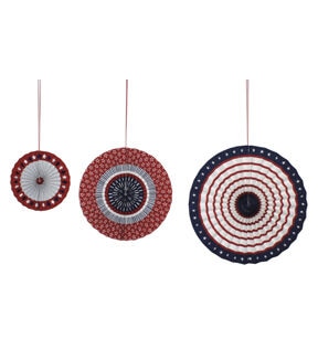 Add a touch of patriotism to your home decor with this set of three handmade paper pinwheels by Place & Time. Each pinwheel comes with a magnet, making it easy to display on any metal surface. The set includes three different sizes, measuring 7 inches, 11 inches, and 14 inches, respectively. The vibrant colors of red, white, and blue will add a festive touch to any room in your home.