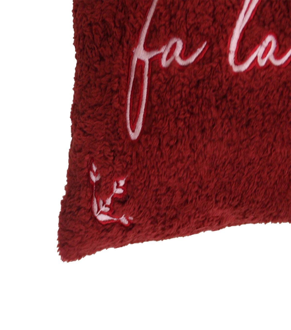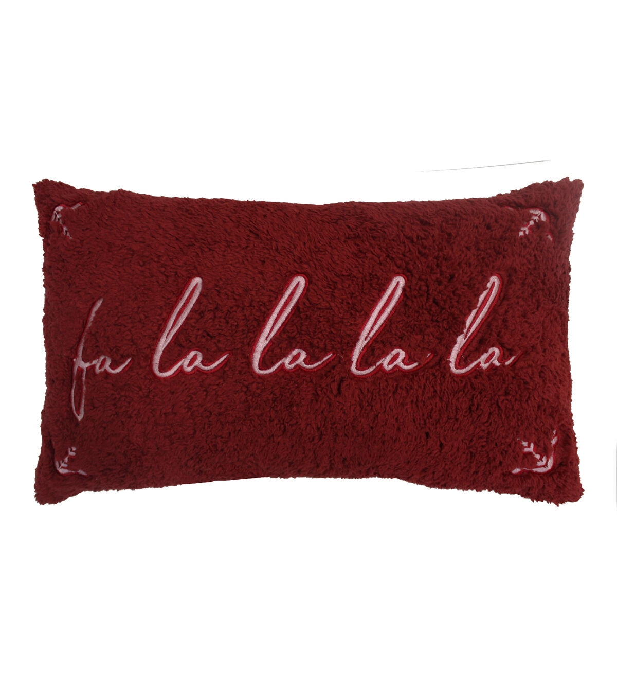 The Christmas Fa La La on Red Lumbar Pillow by Place & Time will make an eye-catching addition to your living room this holiday season. This textured lumbar pillow in red sports an embroidered pattern of the words ‘Fa La La’ and a leaf pattern on the edges. Place it on a couch or sofa along with coordinating throws and pillows to complete your festive decor.