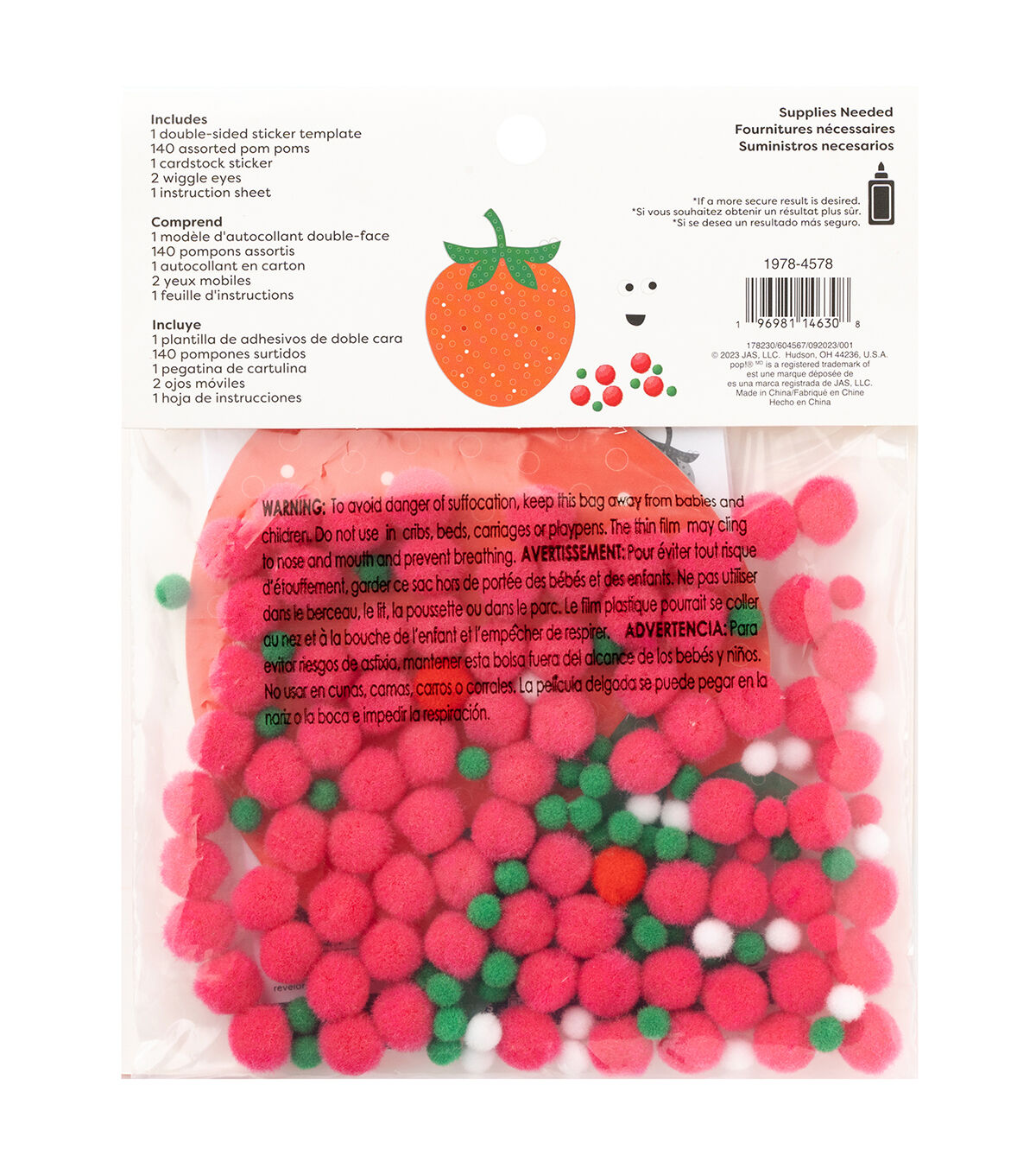 - INCLUDES: 1 double-sided sticker template, 140 colorful pom poms, 1 cardstock sticker sheet, and wiggle eyes.