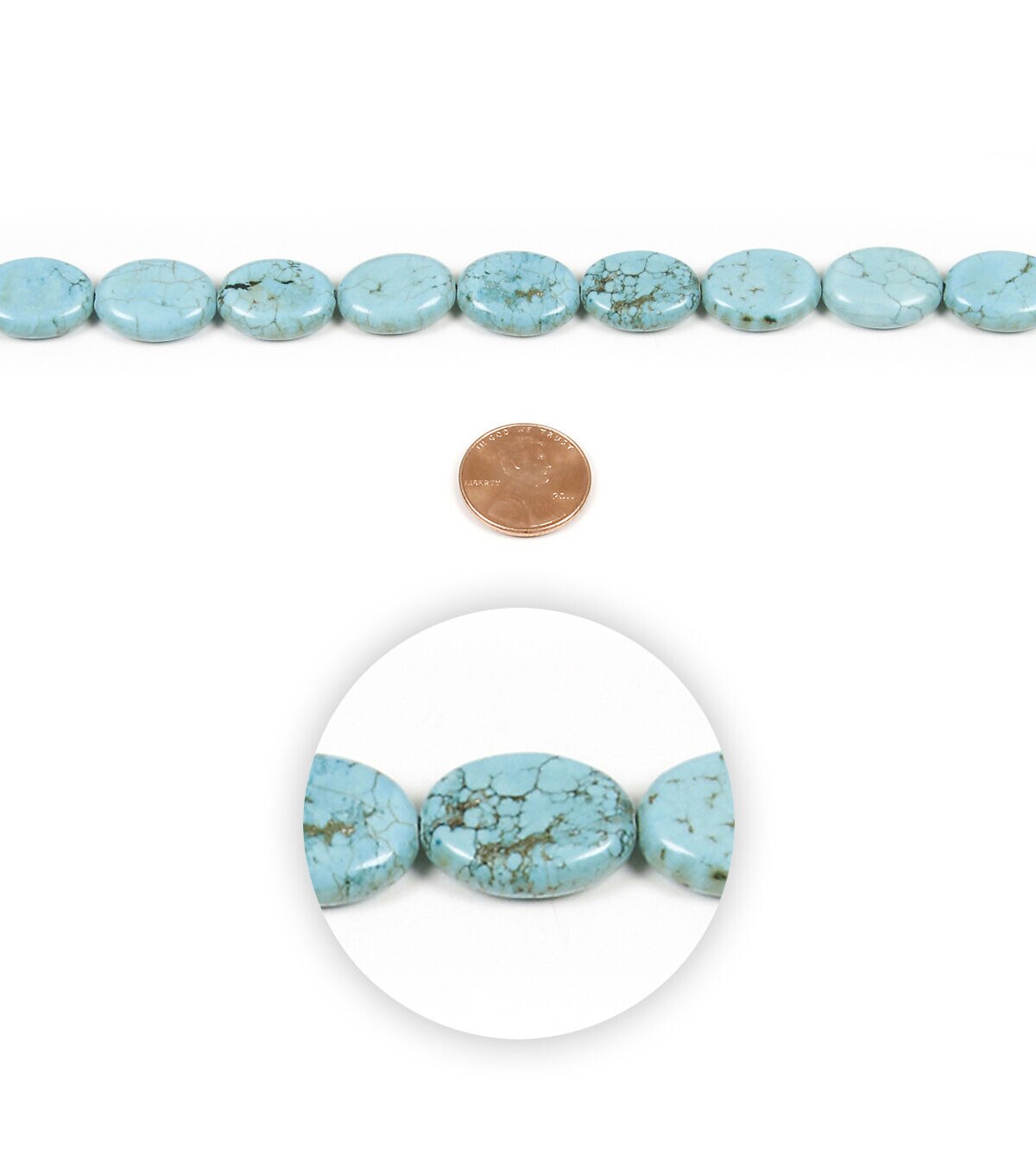 Accentuate your jewelry creations with the Faux Turquoise Oval Bead Strand by hildie & jo. These stone beads sport a turquoise shade with patterns in black and brown on their surfaces. Combine these beads with other jewelry components to make uniquely creative designs. You can also use them to make keychains and backpack blings.Brand: hildie & jo Dimensions: 14 x 10 millimeter