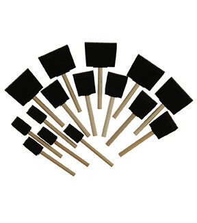 Economical foam brushes are ideal for paint, enamel, latex, stain and tempera application. This set contains five each of 1", 2", and 3" foam brushes with wood handles.