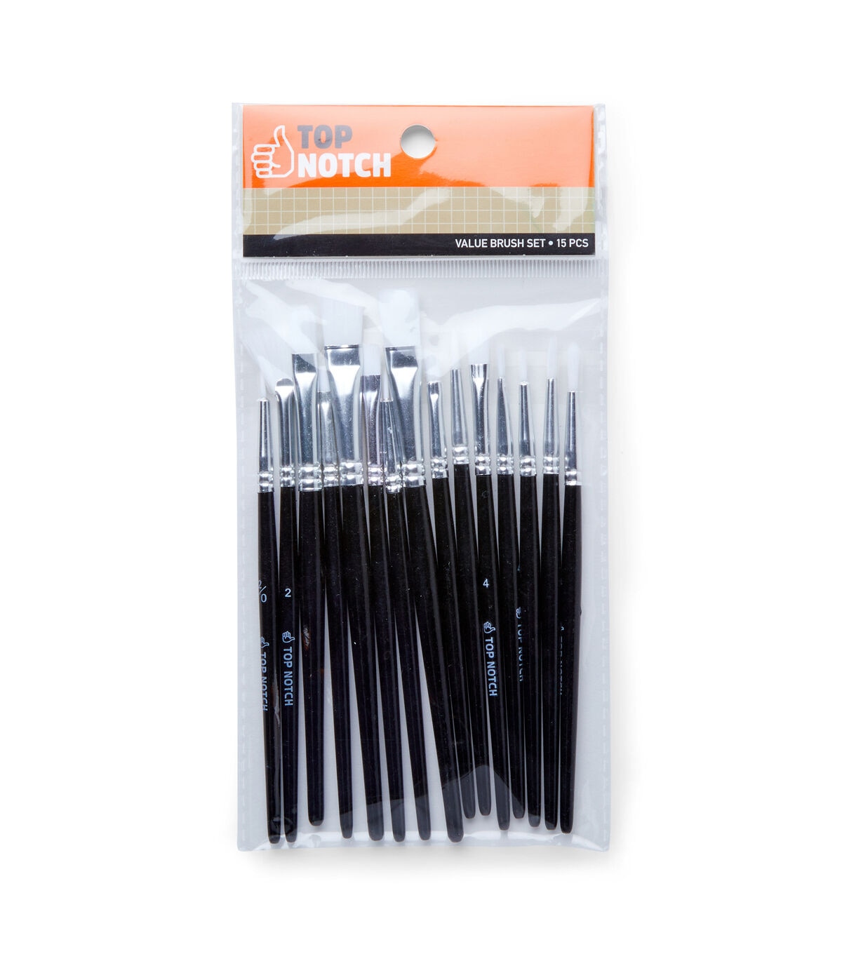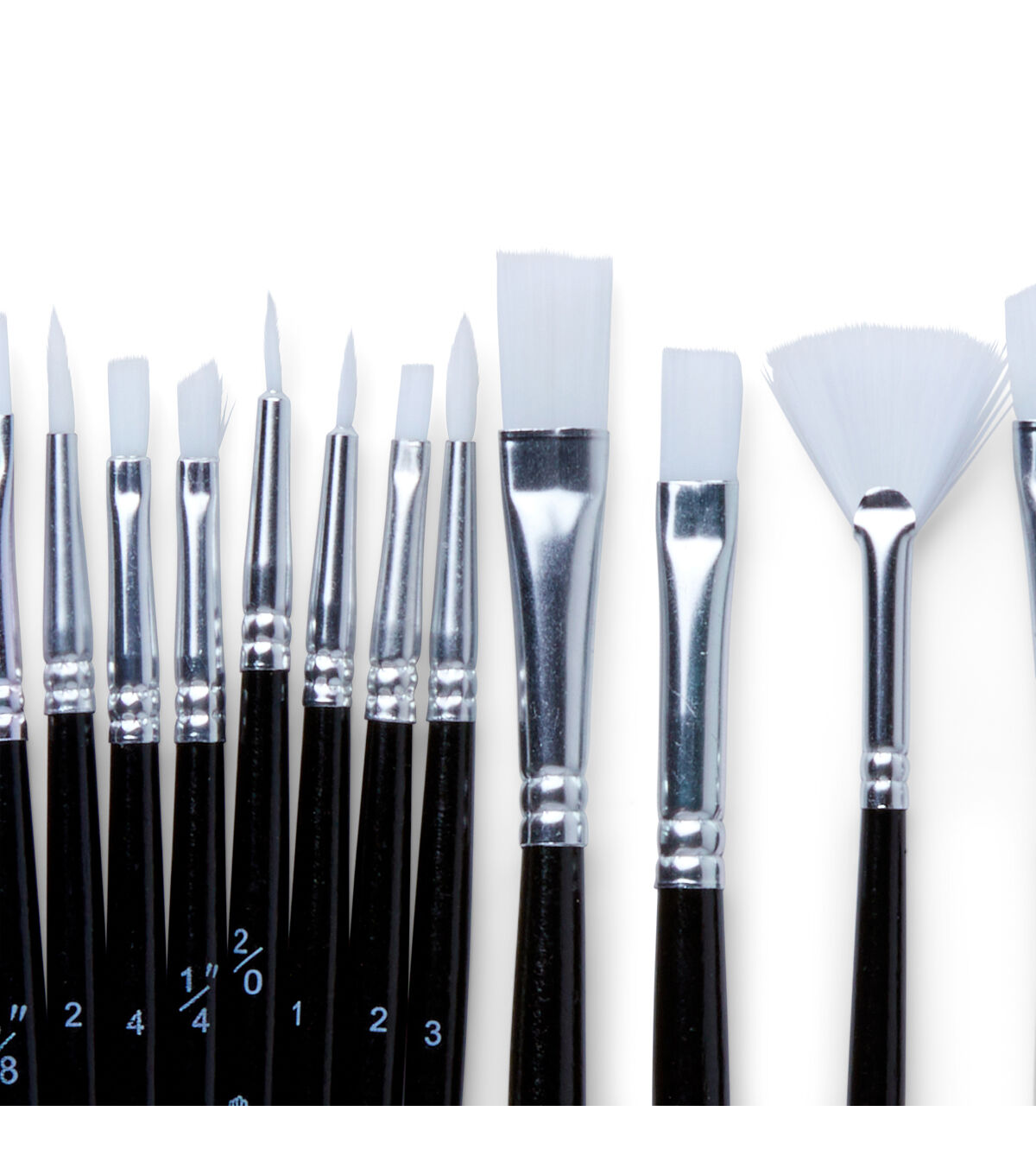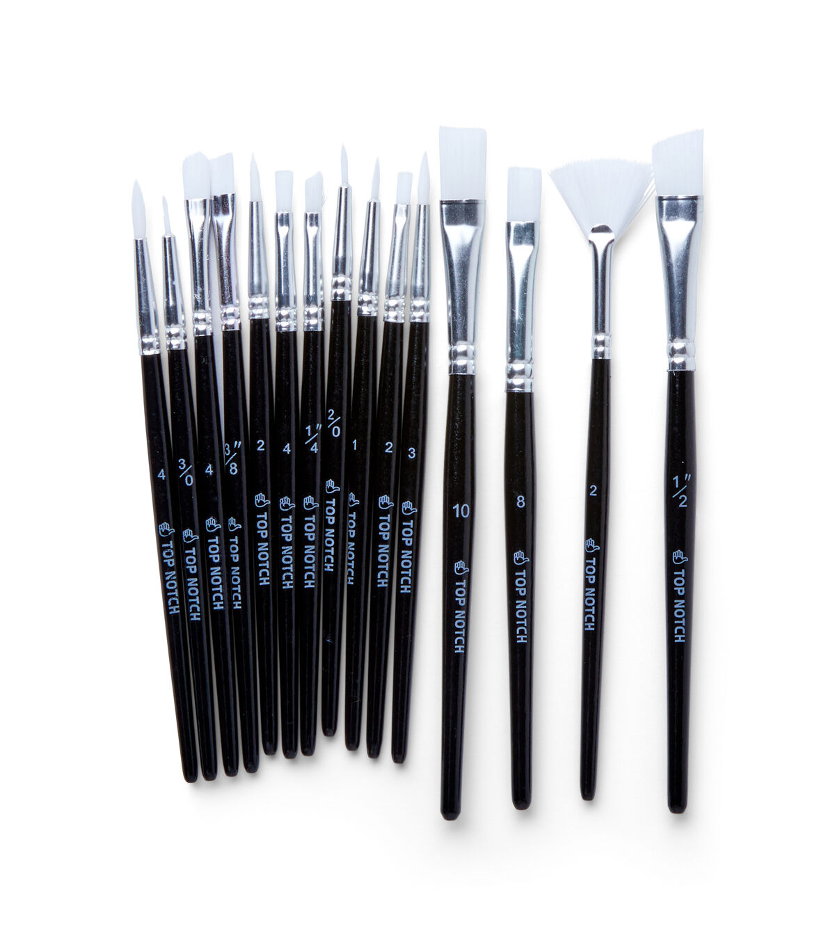 Quality and Value are always top priority for Top Notch. This set features 15 sparkly handled brushes all with white taklon hair. Enjoy four flat shaders, four rounds, three angle shaders, a fan, a filbert, a liner, and a detail brush.