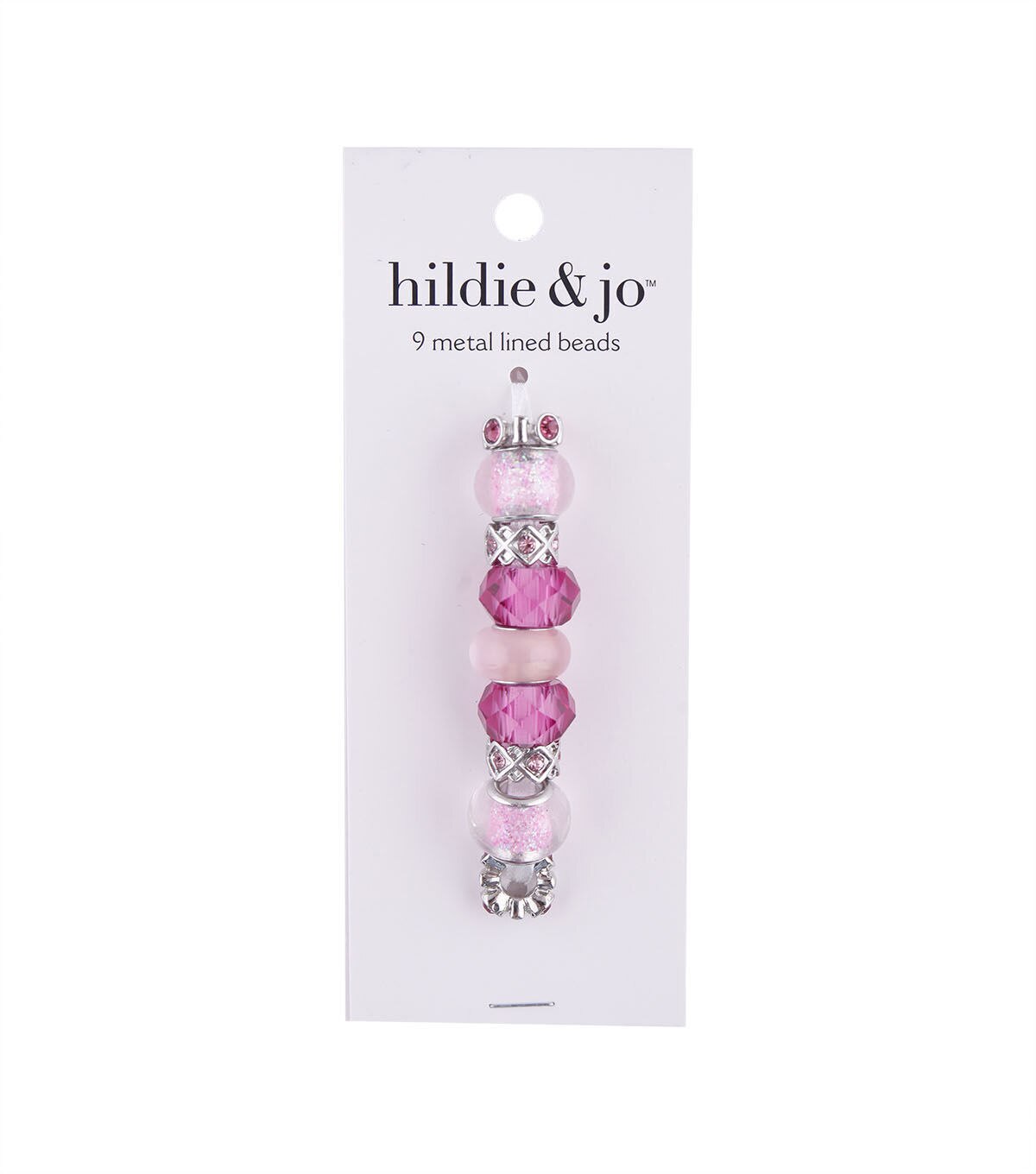Prettify your jewelry designs by using the attractive hildie & jo Mix & Mingle Metal Lined Glass Beads - Hot Pink. Sporting a pink shade with silver-toned spacers, this beaded string contains nine beads that are made of glass, zinc alloy and brass. You can use them to adorn your bracelets, headbands, necklaces and lots more.
