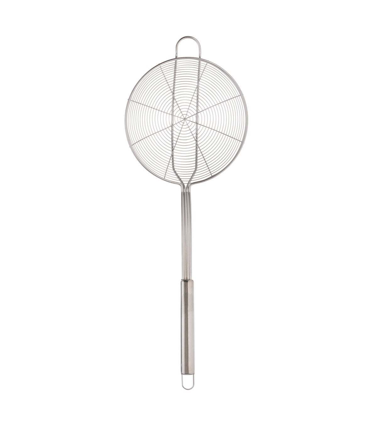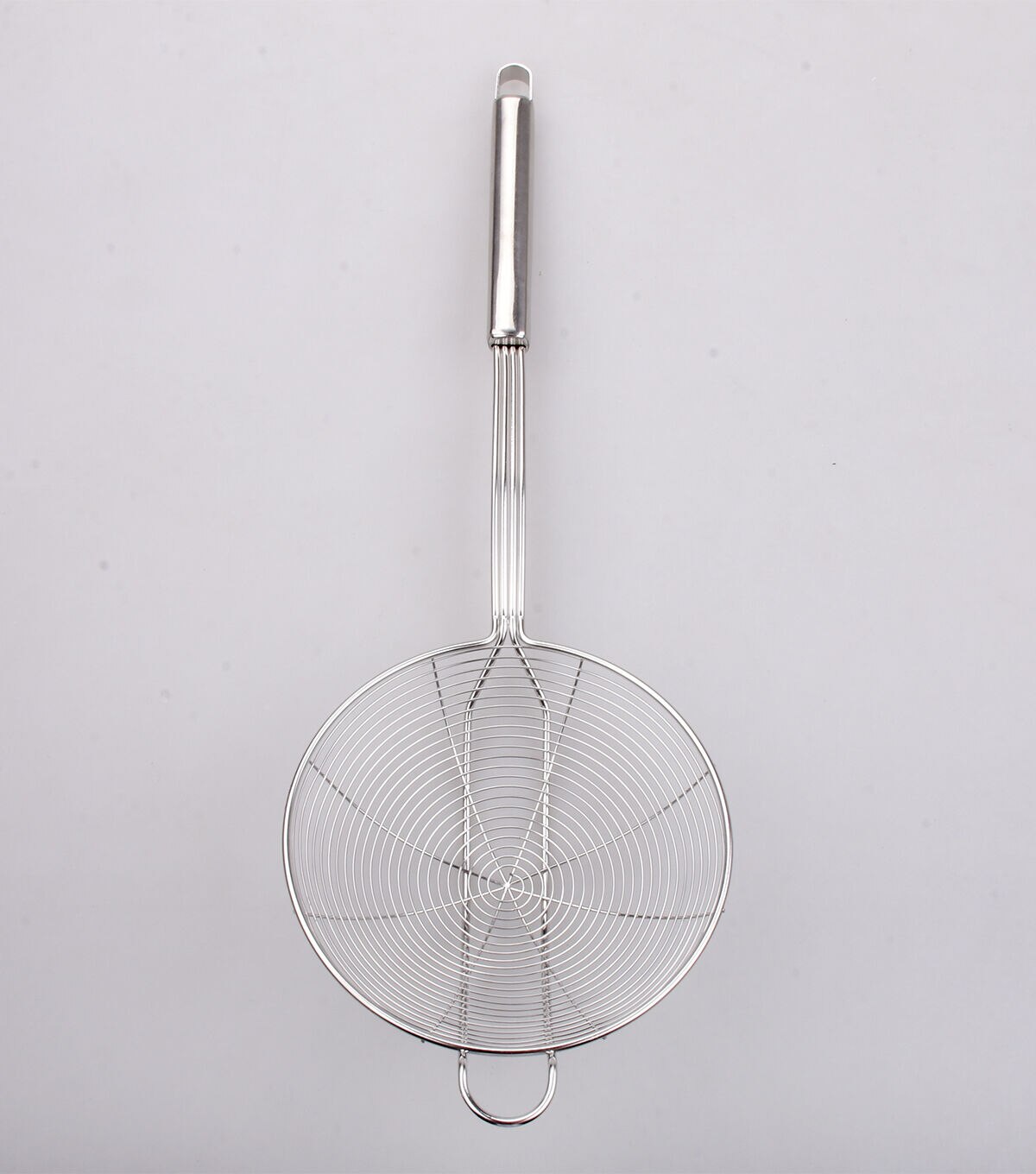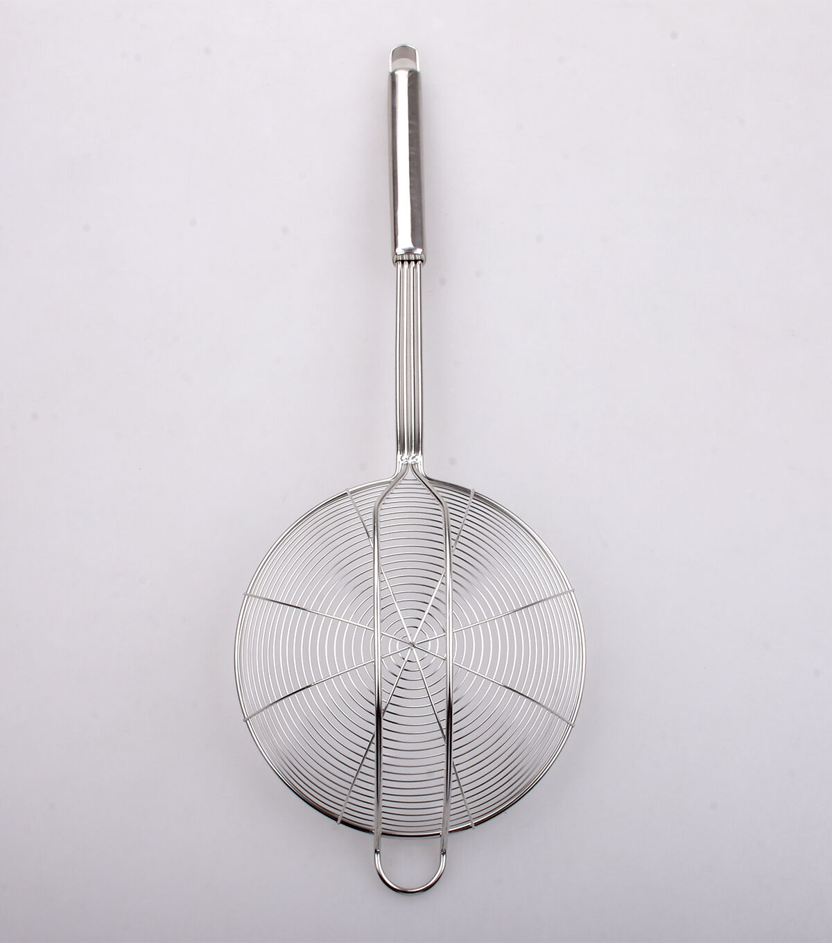 This spider strainer is a kitchen staple. Use it to boil and deep fry with ease. The large-capacity basket fits more food, and the long handle keeps your hands away from hot water/oil. The stainless steel construction is both sturdy and lightweight.
