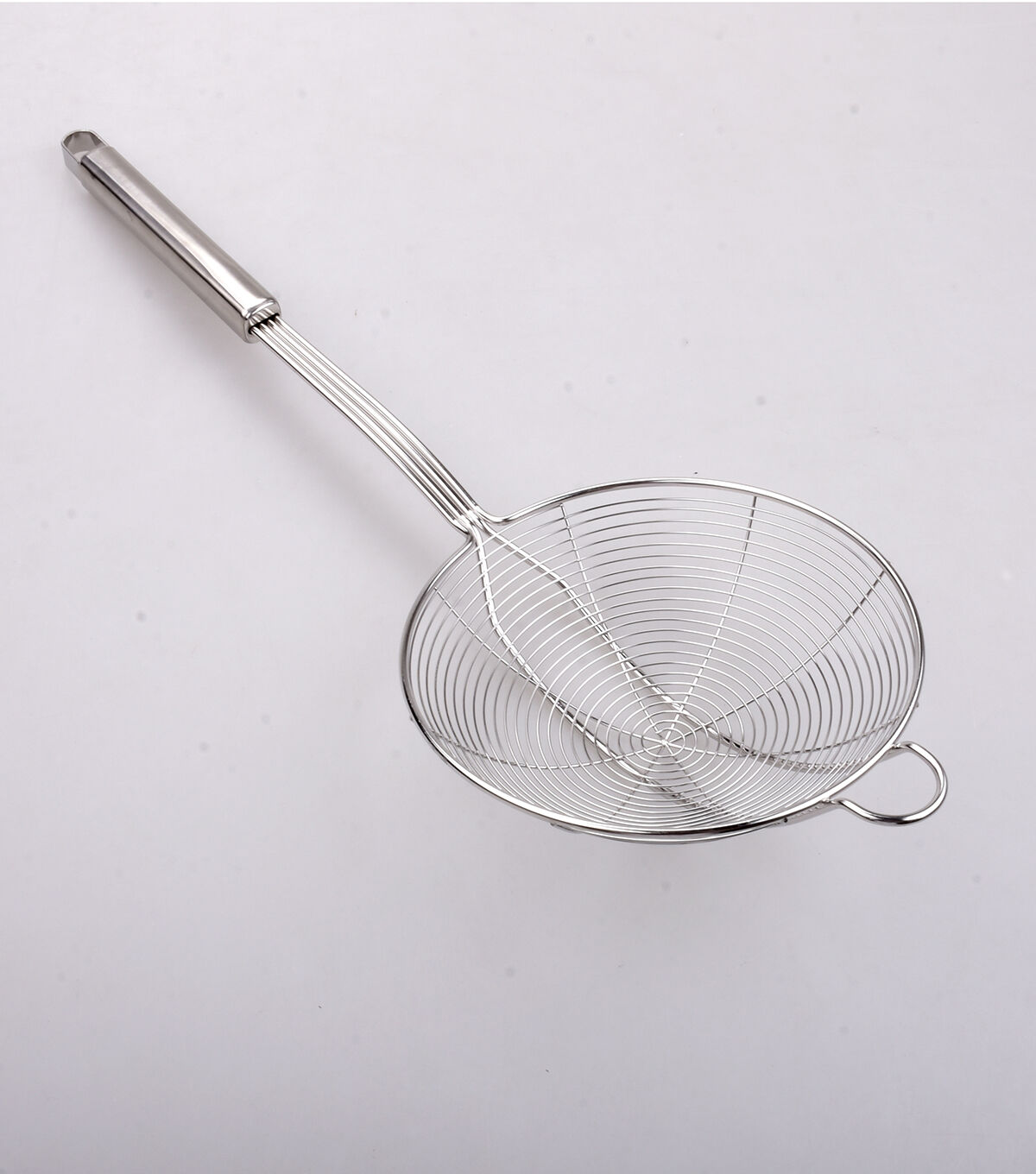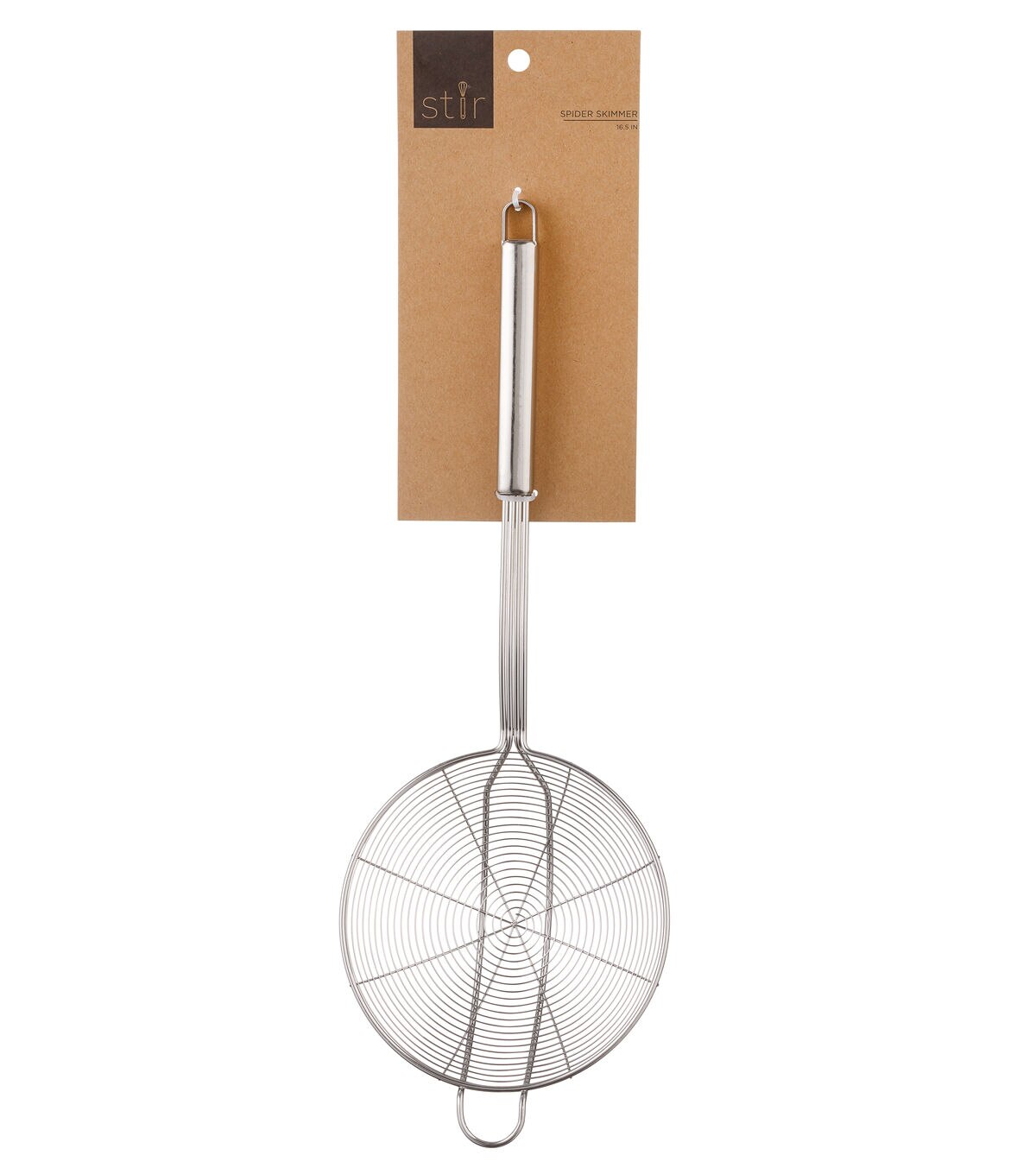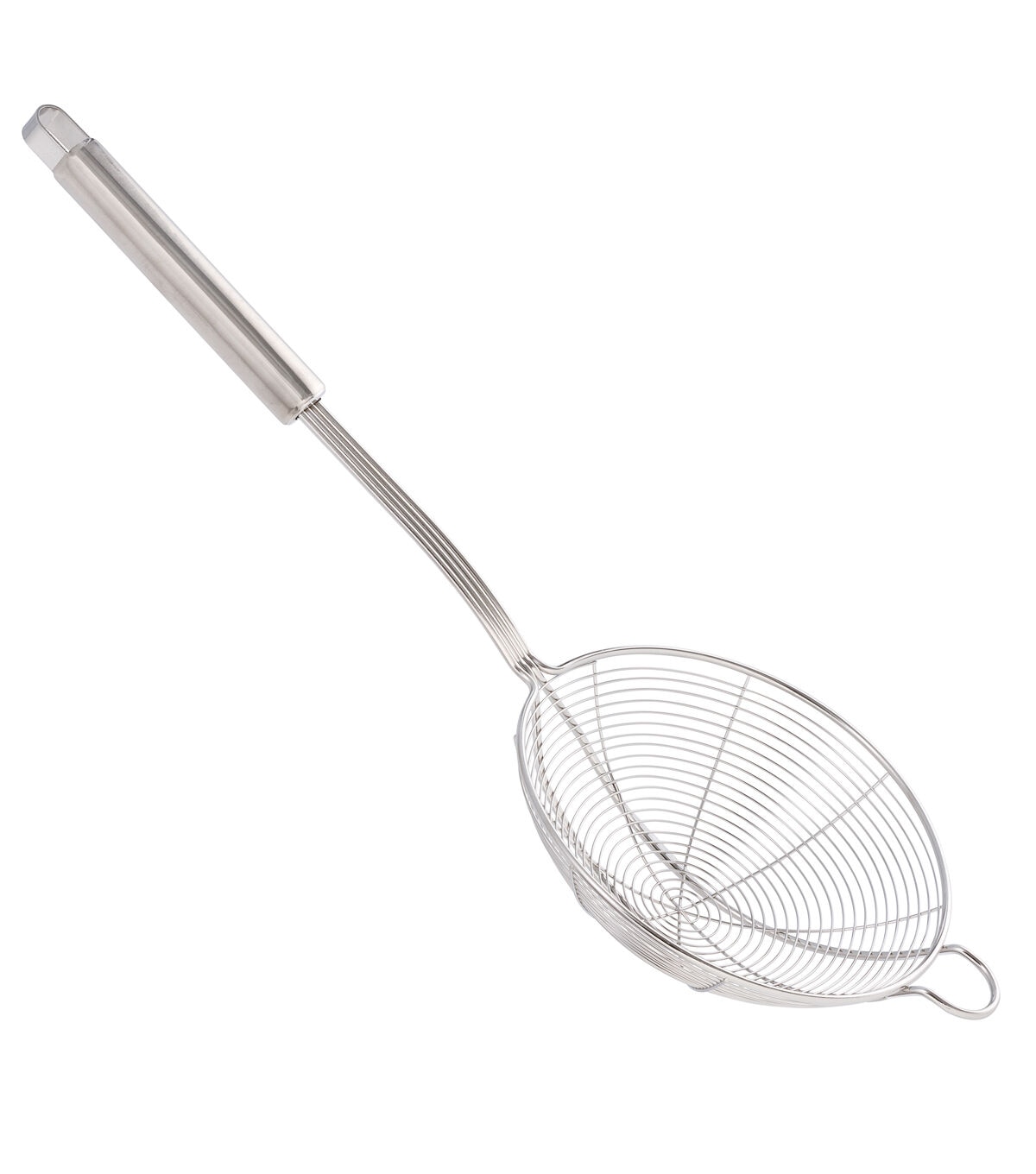 This spider strainer is a kitchen staple. Use it to boil and deep fry with ease. The large-capacity basket fits more food, and the long handle keeps your hands away from hot water/oil. The stainless steel construction is both sturdy and lightweight.