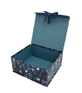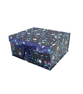 Beautiful 16" Floral on Dark Blue Flip Top Box With Bow by Place & Time
