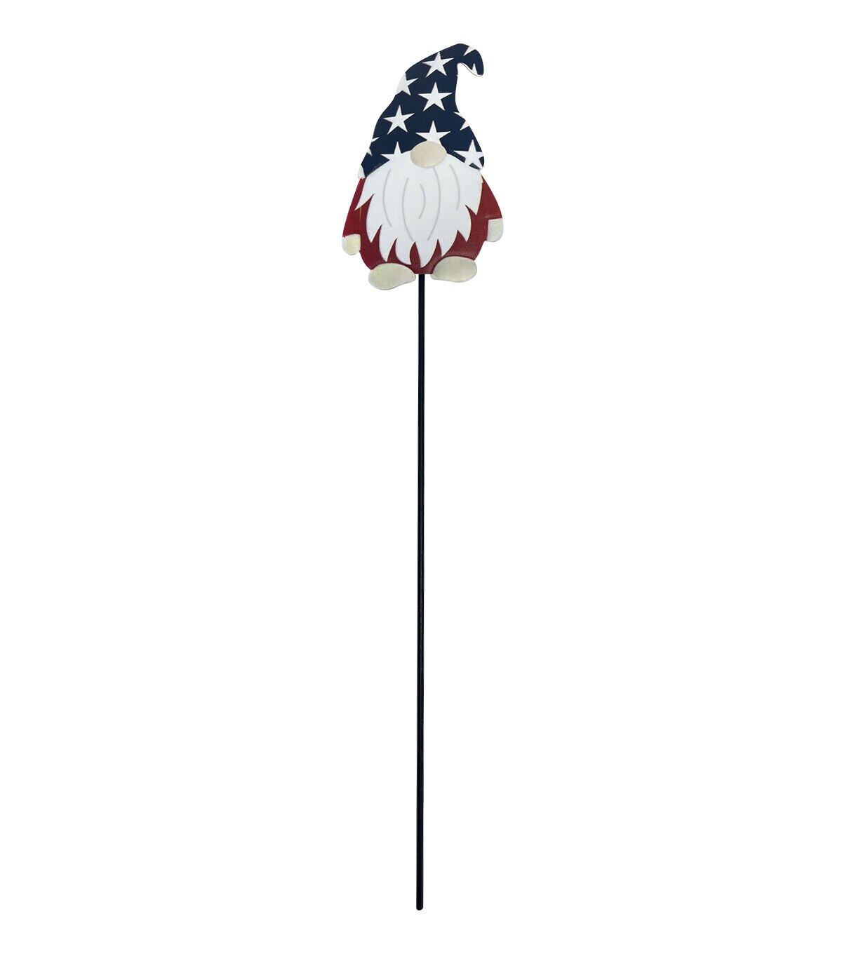 Decorate Your Yard with the 16" Patriotic Red & White Iron Gnome Mini Yard Stake by Place & Time