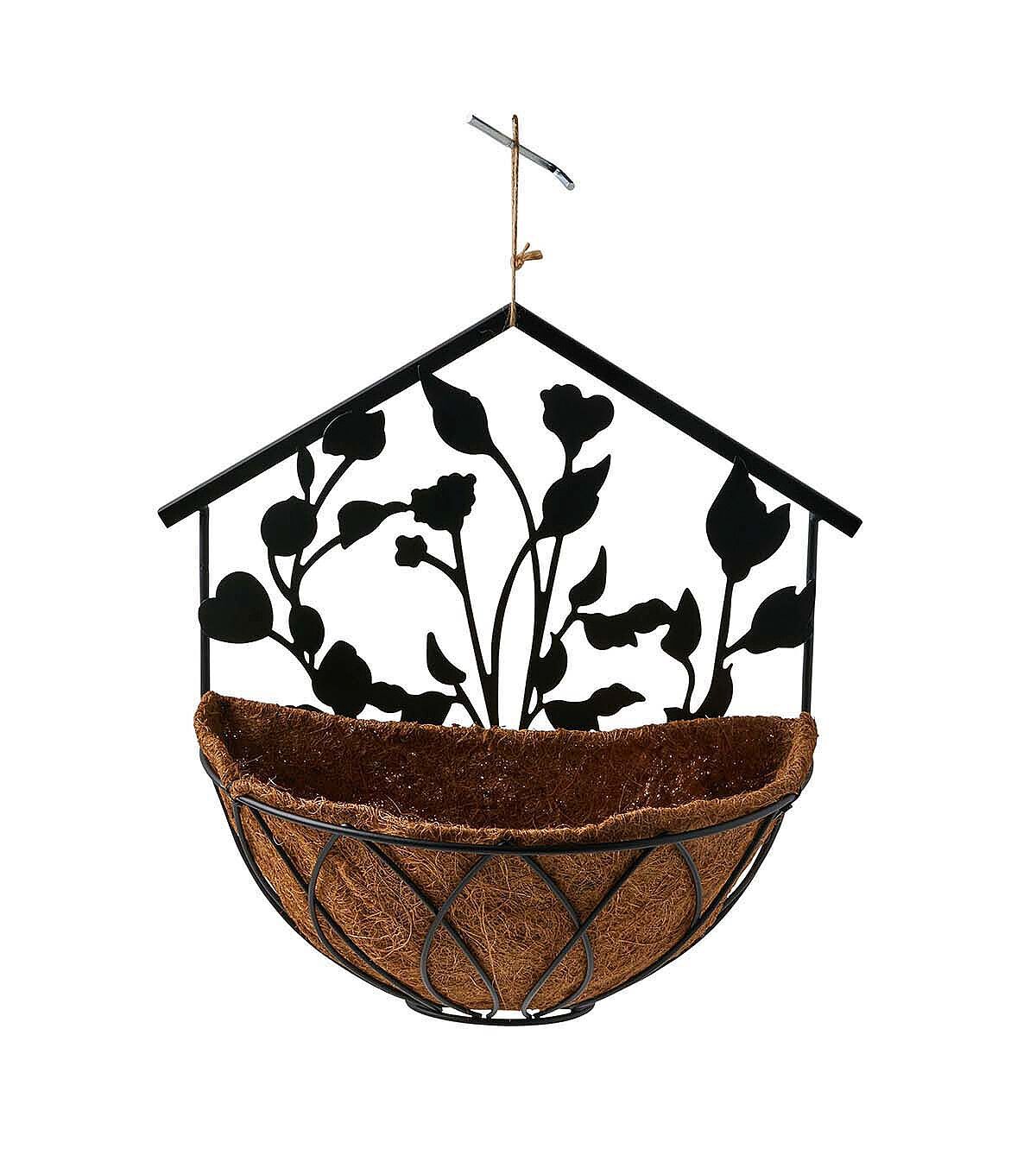 Spruce up your seasonal decor with the Spring Black Iron Floral Wall Planter by Place & Time. This iron wall planter in black comes with a coco liner and is designed with a cutout floral pattern. Use it to pot a seasonal flowering plant and display it on the porch or balcony. You can also add it to the gift basket of a gardener friend.