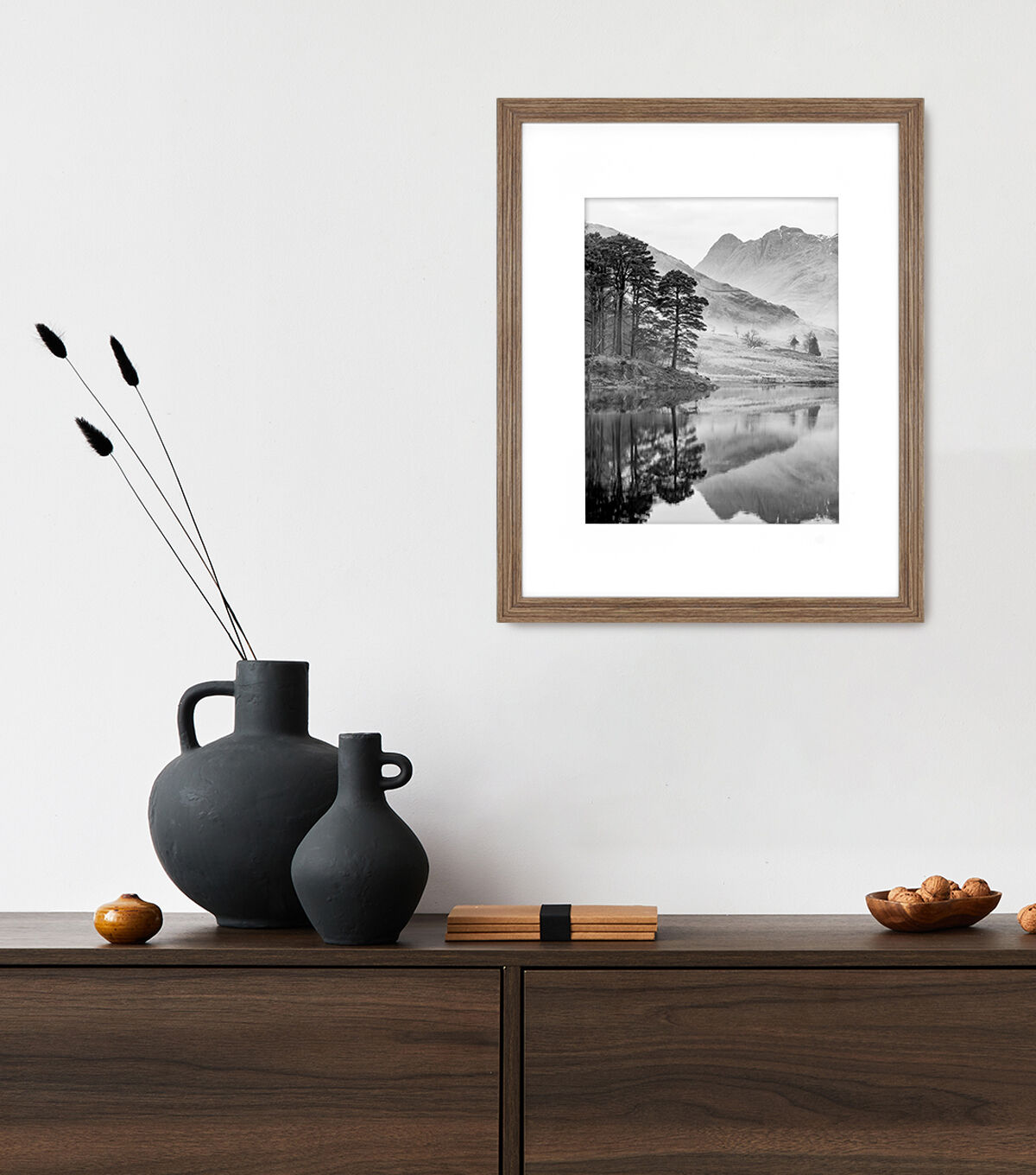 This sleek picture frame is both contemporary and classic and will fit into a variety of decors. It features a bold decorative recessed border in a black finish and incorporates a white beveled mat to feature your favorite photo. This frame will hold one 11x14 inch photo displayed inside the mat opening or one 16x20 inch photo displayed without the mat.