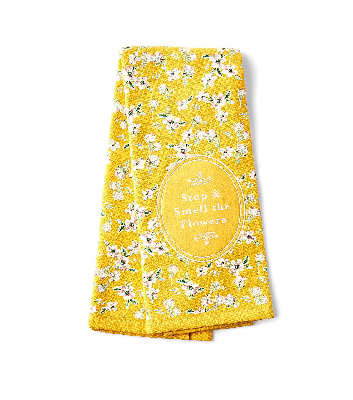 Infuse springtime charm into your Easter home decor using the Easter Stop & Smell the Flowers Kitchen Towel by Place & Time. Displaying an allover floral print and the phrase ‘Stop and Smell the Flowers,’ this towel will add a refreshing touch to your space. It will make the perfect addition to your kitchen, bathroom or dining room.