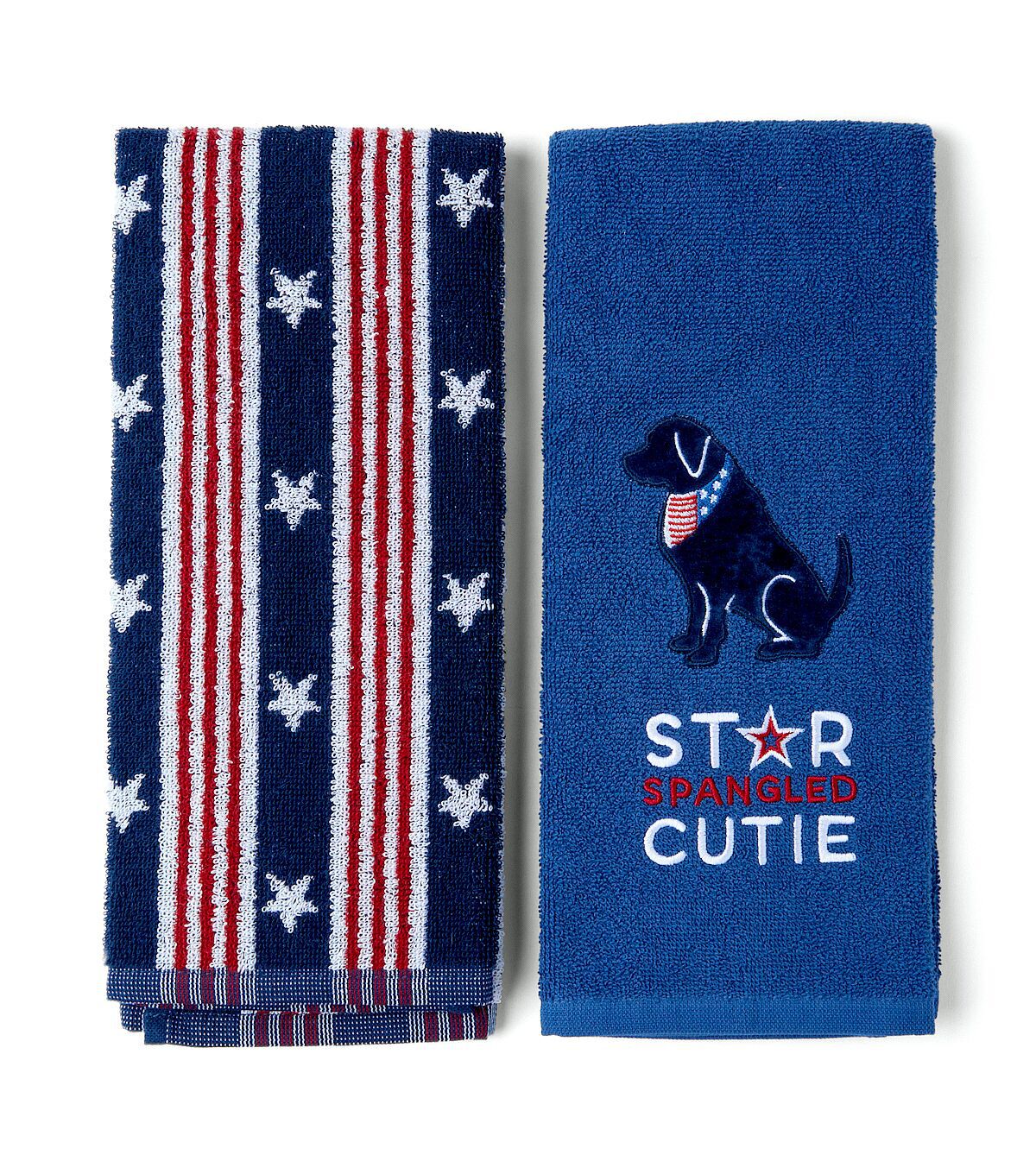 Get Patriotic with the 16" x 26" Patriotic Star Cutie Dog on Blue Towels 2pk by Place & Time