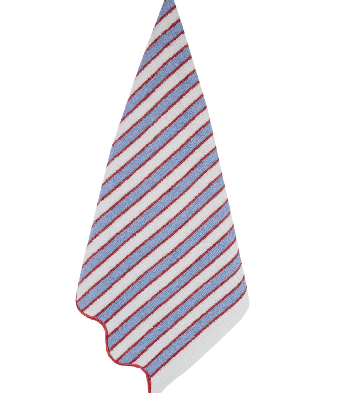 Accentuate your spring-themed dining table setting with the Spring Blue Stripes Towel by Place & Time. This towel flaunts a striped pattern in blue with red borders. It is made from cotton and is highly absorbent. You can also make it a part of your kitchen decor or add it to the holiday gift basket of a close friend.