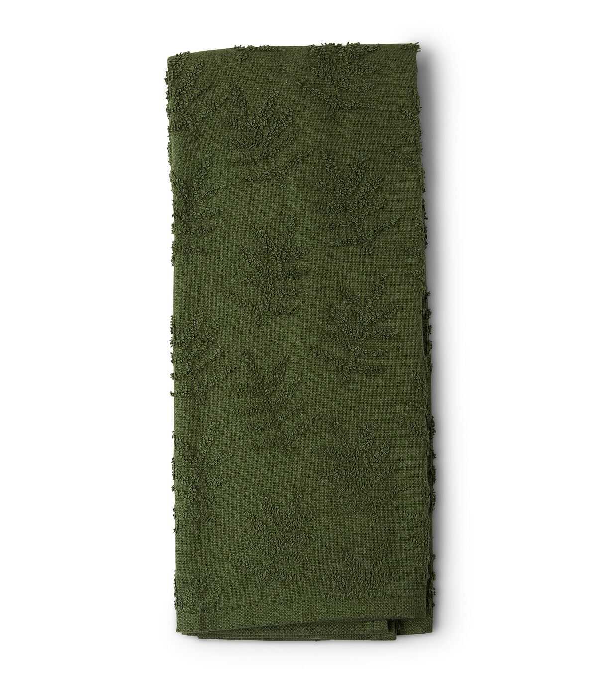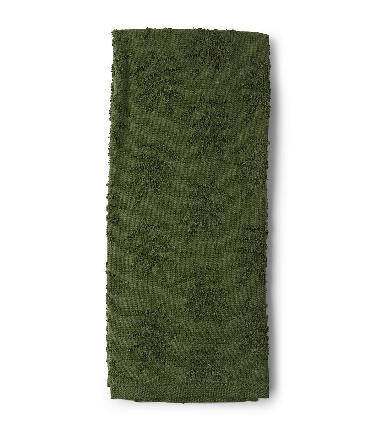Enhance your seasonal kitchen decor with the Spring Dark Green Fern Sculpted Jacquard Towel by Place & Time. Flaunting a beautiful dark green hue, this fern-patterned jacquard towel will blend right in with your spring-themed setup. You can also use it to spruce up your dining table for a dinner party or decorate a gift basket.