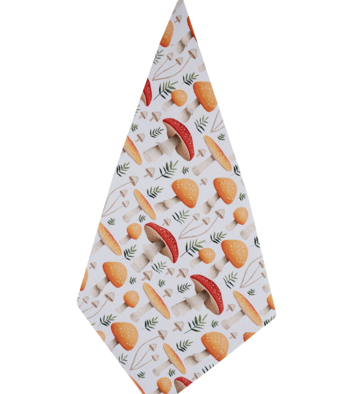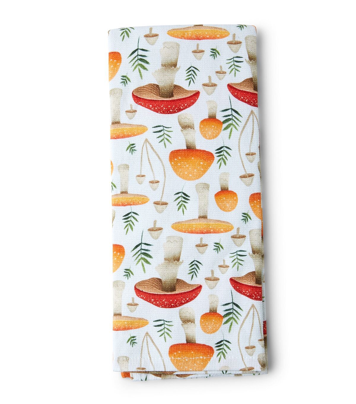 Enhance your kitchen decor with eye-catching seasonal accents like the Spring Mushrooms on White Towel by Place & Time. This cotton towel in white sports colorful mushrooms and green leaves. Hang it next to your kitchen sink, or on the oven door. You can also use it to decorate a gift basket.