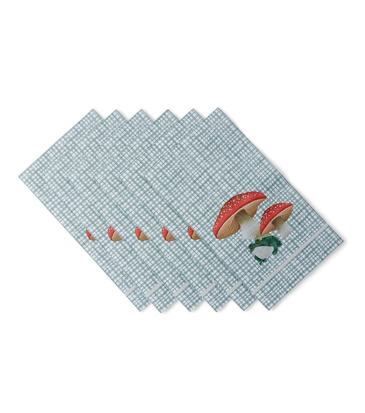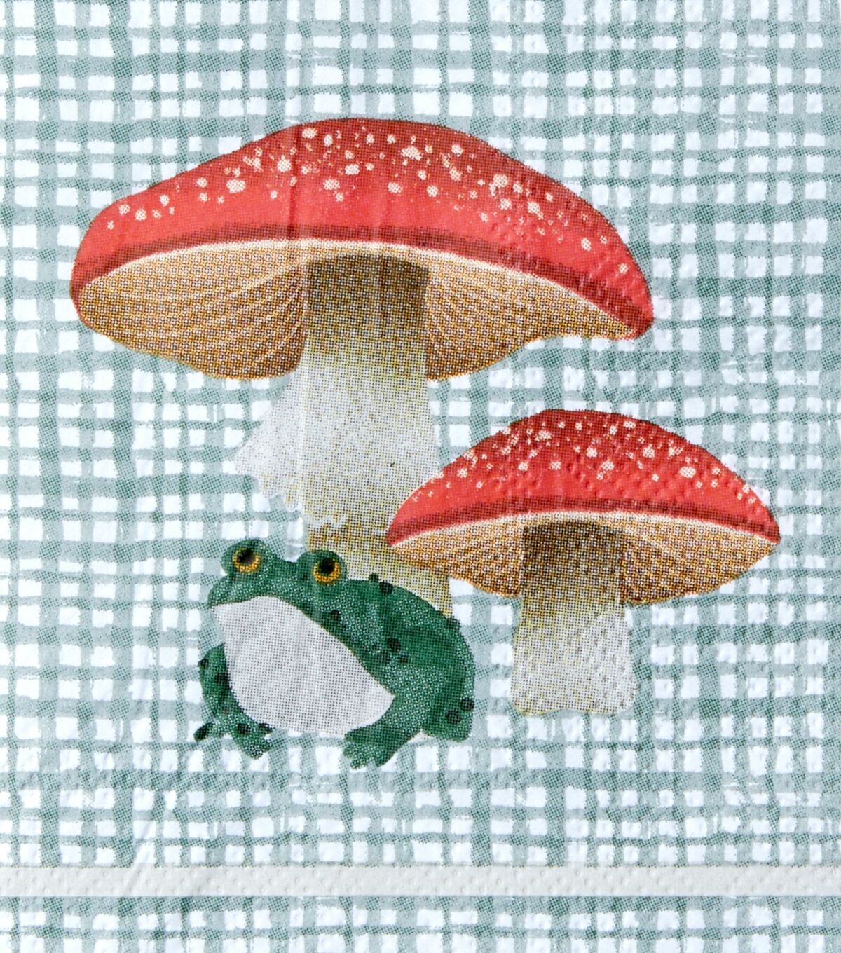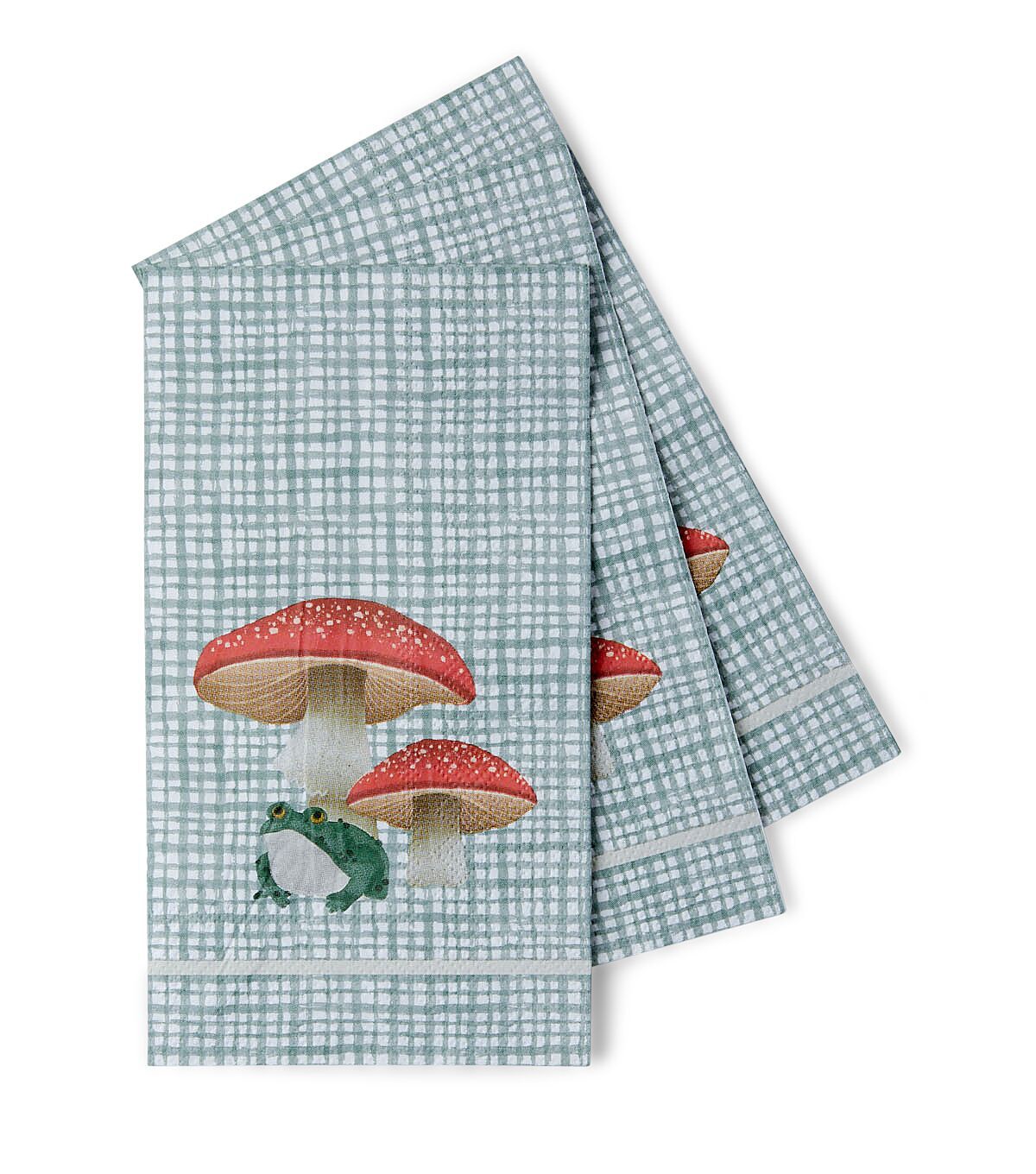 Complete your spring table setting in style with the Spring Red Mushrooms on Blue Guest Napkins by Place & Time. This pack includes 16 paper napkins, each flaunting a print of mushrooms along with a frog over a plaid pattern in blue. You can give them to guests while serving finger foods or appetizers. Team these napkins with coordinating plates, bowls and platters for added visual charm.