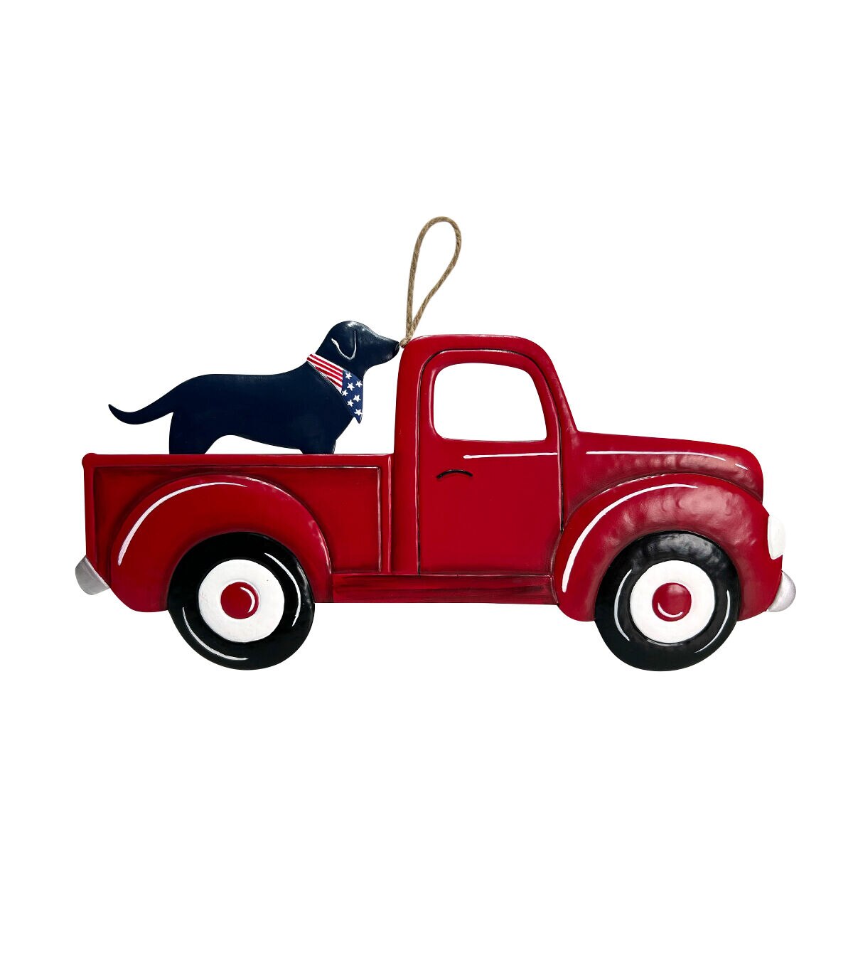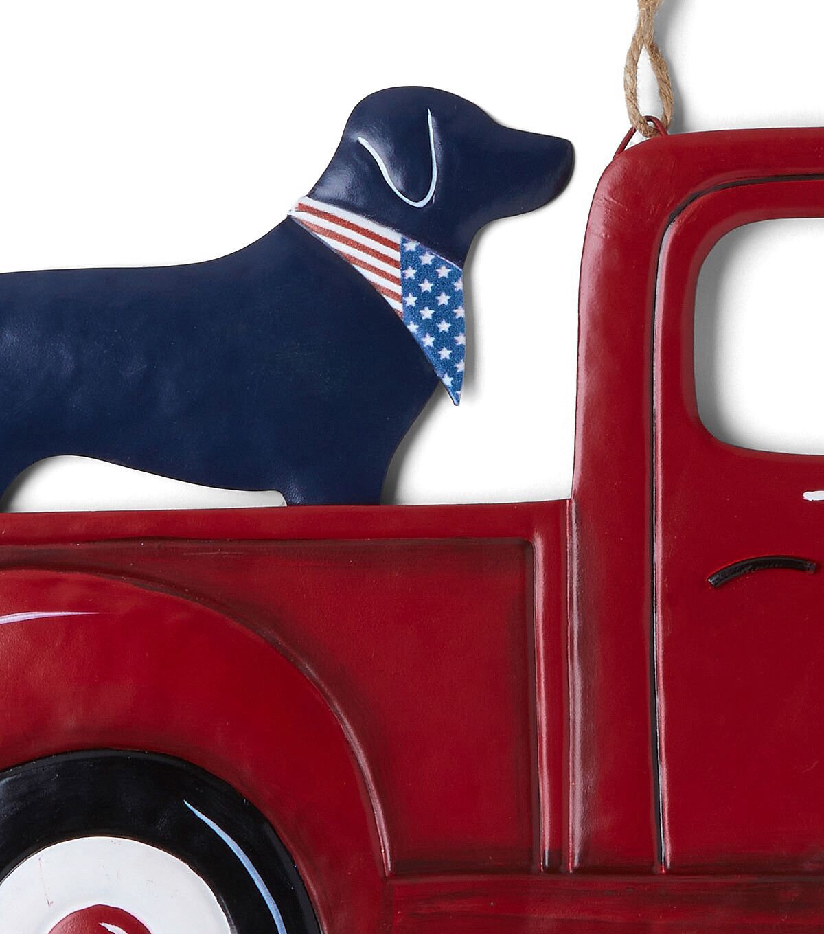 Add a touch of patriotism to your home decor with this charming 16" x 8" Patriotic Red Iron Truck With Dog by Place & Time. This decorative piece is perfect for displaying on a mantel, shelf, or table. The red truck with a dog in the back is a classic symbol of Americana that will add a nostalgic touch to any room.