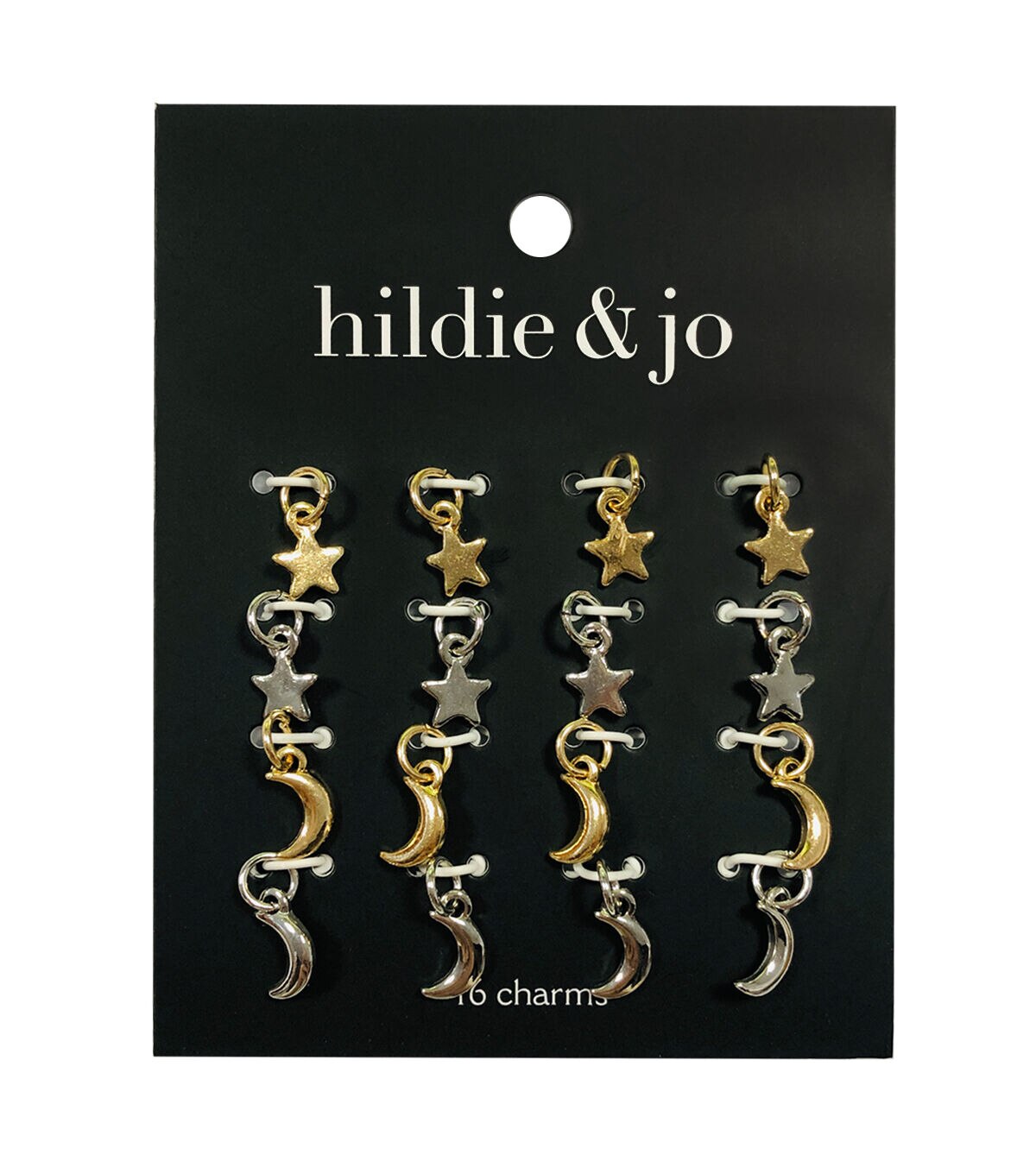 Designing jewelry will be fun with the hildie & jo Moon & Star Charms. Of the 16 charms in this pack, eight charms are shaped like the crescent moon and the other eight like stars. You can pair them with beads and gemstones to create jewelry pieces like bracelets, anklets, keychains, necklaces and more.