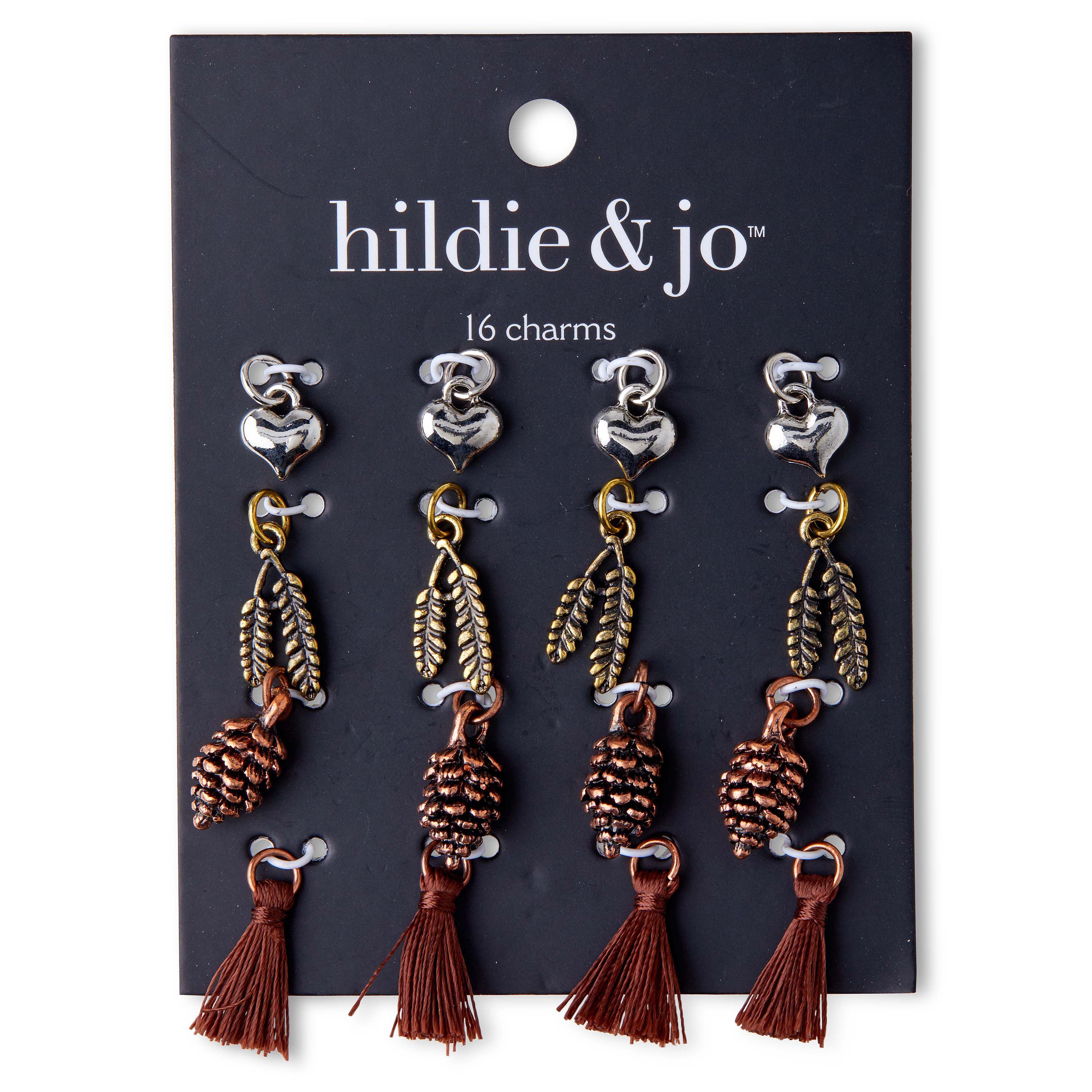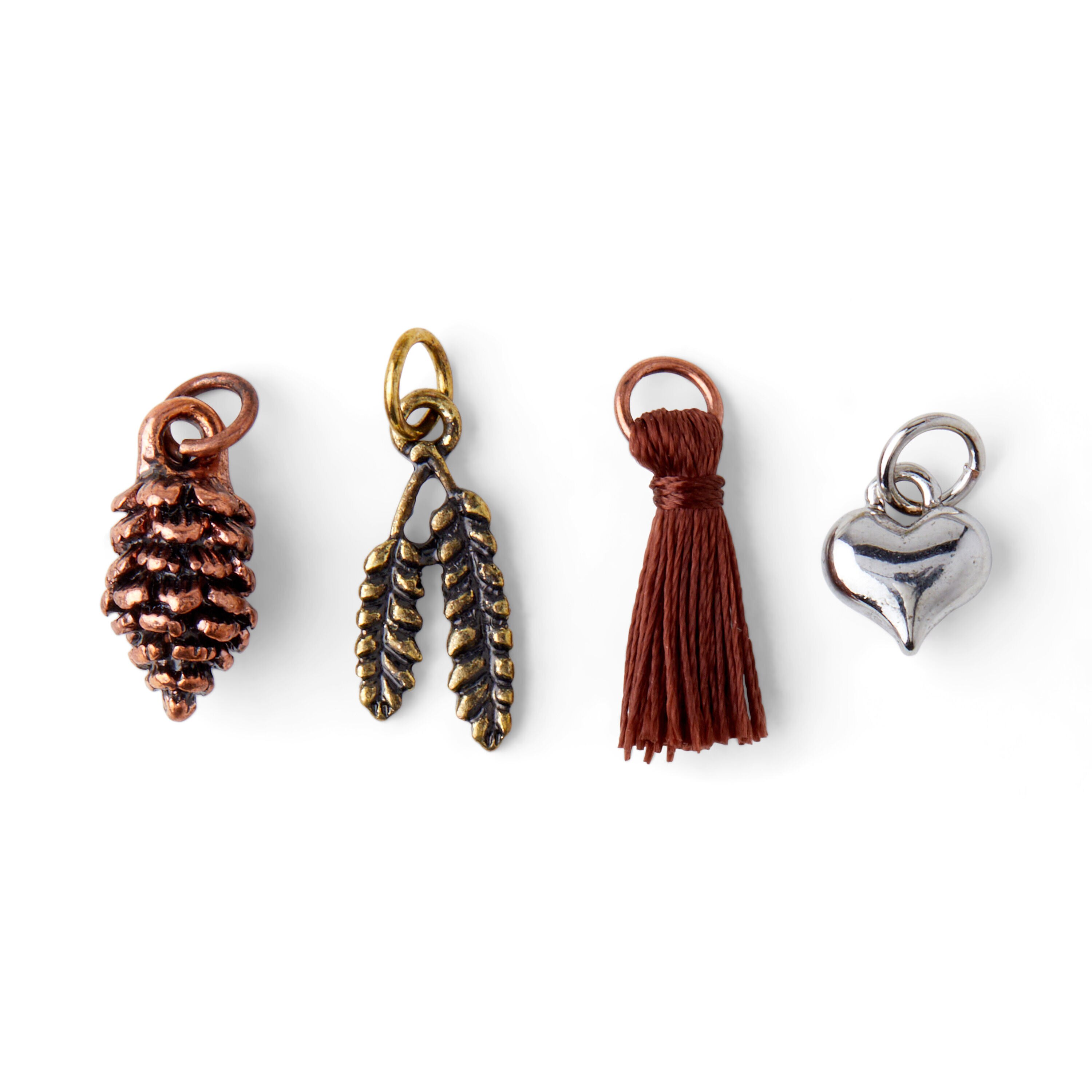 Lend an adorable look to your DIY jewelry projects with the hildie & jo Heart, Red Tassel, Fall Bronze Pinecone & Wheat Charms. You can use these charms to decorate necklaces, bracelets, craft projects and more. This pack of 16 charms in the shapes of a heart, pinecone, wheat stalk pair and tassel.