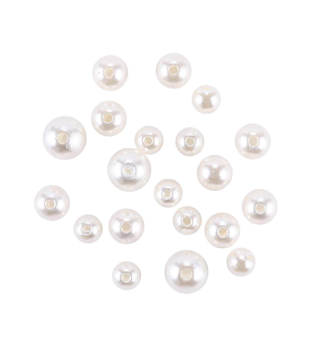 Make beautiful jewelry using the hildie & jo Round Plastic Pearl Beads - Off-white. These plastic beads resemble freshwater pearls and will lend an elegant touch to your creations. String them together to create necklaces or team them with tassels and earring wires to design a unique pair of earrings.