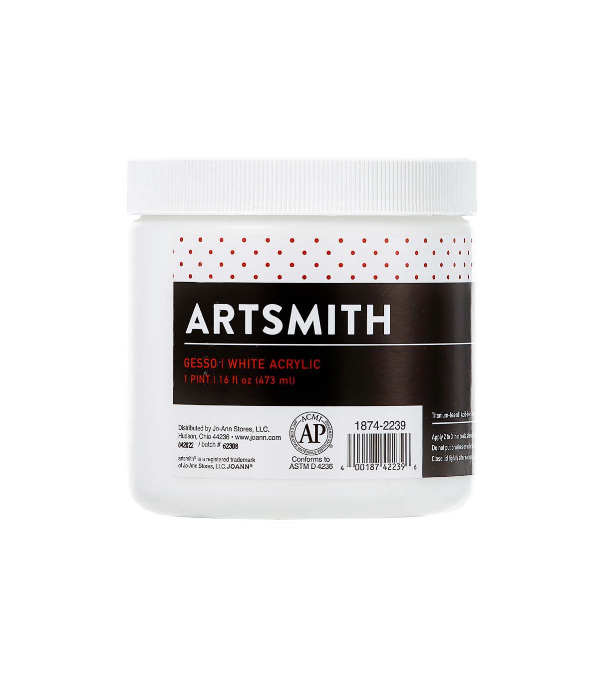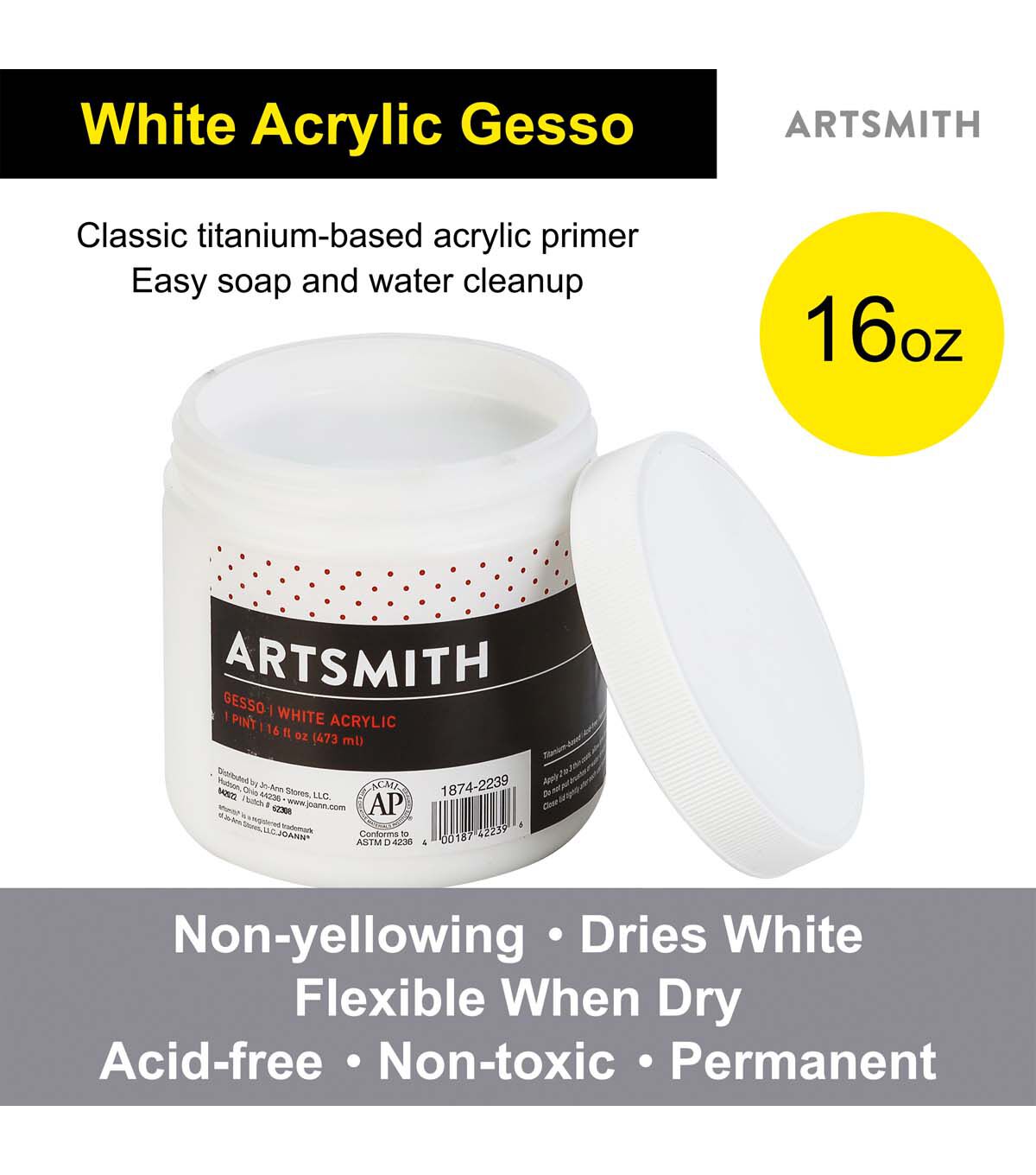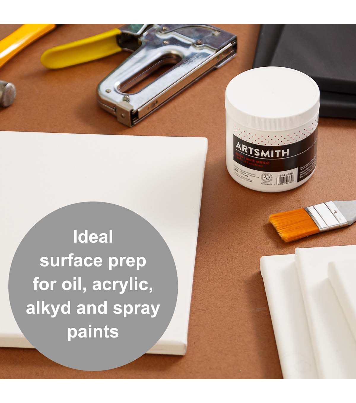 Artsmith's titanium-based white acrylic primer provides a reliable, classic foundation which is permanent, non-yellowing and flexible when dry. No prior sizing necessary. Great for artists and students alike!