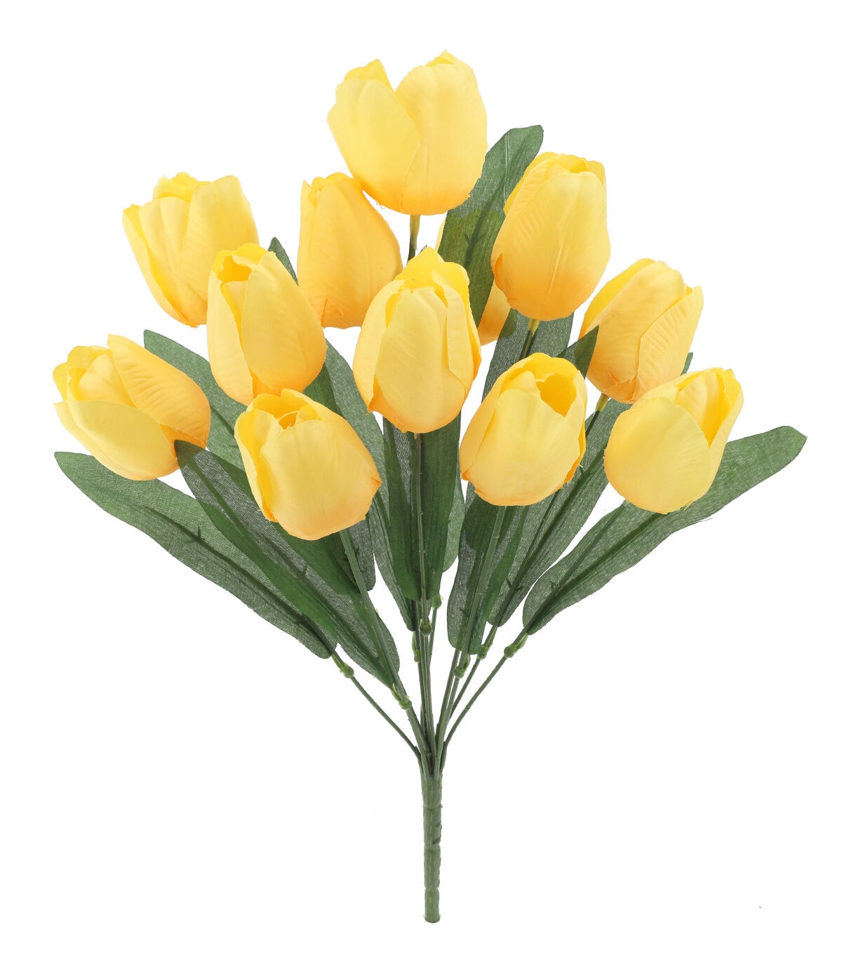 Liven up your home decor with the bright and beautiful Spring Yellow Tulip Bush by Bloom Room. Designed with faux tulip flowers in a yellow shade and green leaves, this realistic floral bush will be perfect for your spring home decor. You can pop it into a vase and use it to spruce up the entryway or living room.