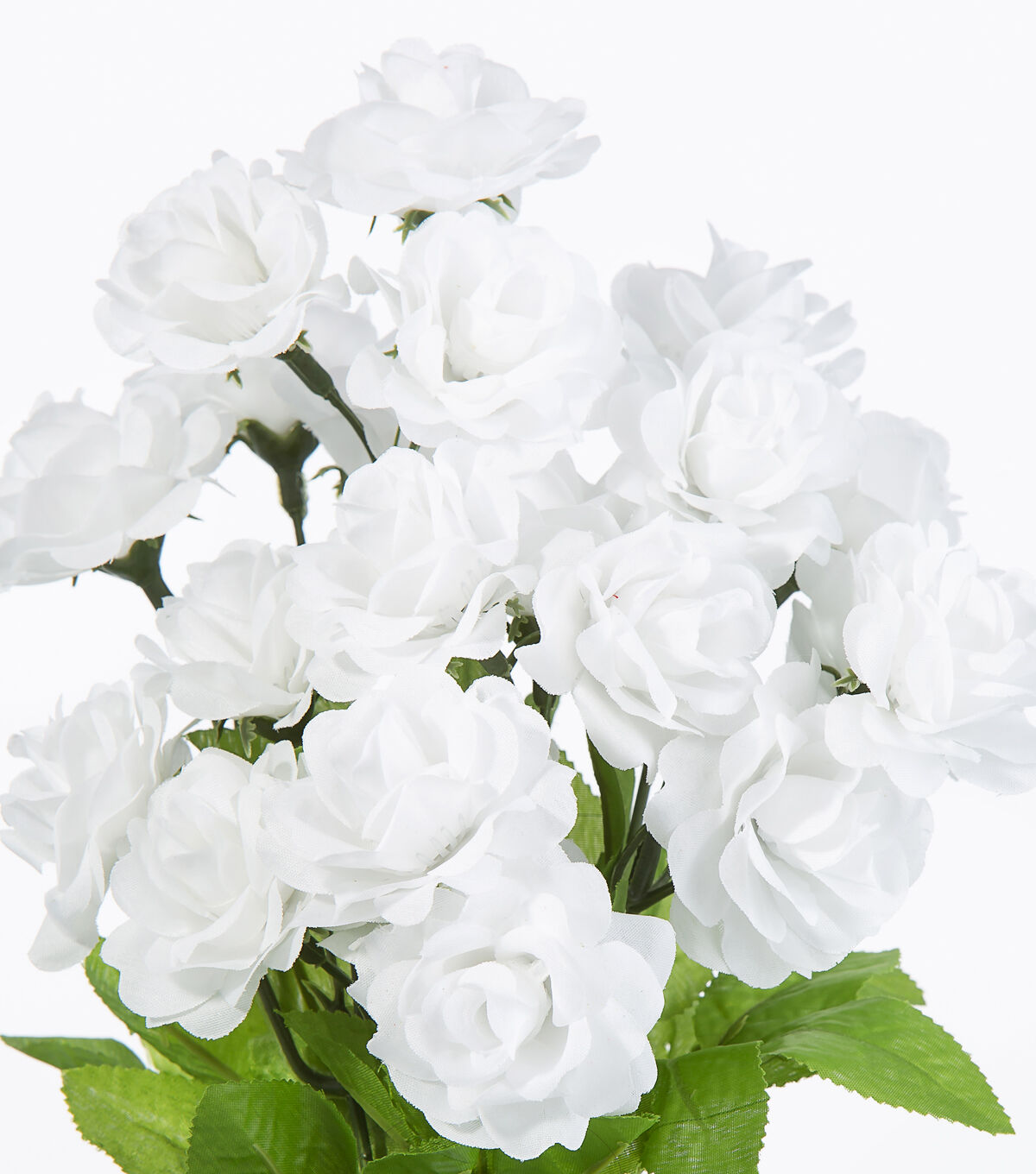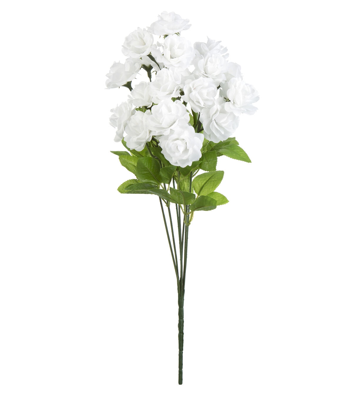 Enhance your indoor decor with the Bloom Room Mini Rose Bush - White. Place this beautiful white faux rose bush in a pedestal vase to decorate your mantelshelf, windowsill or accent table. You can also combine it with floral sprays in similar tones for an added dose of seasonal cheer.