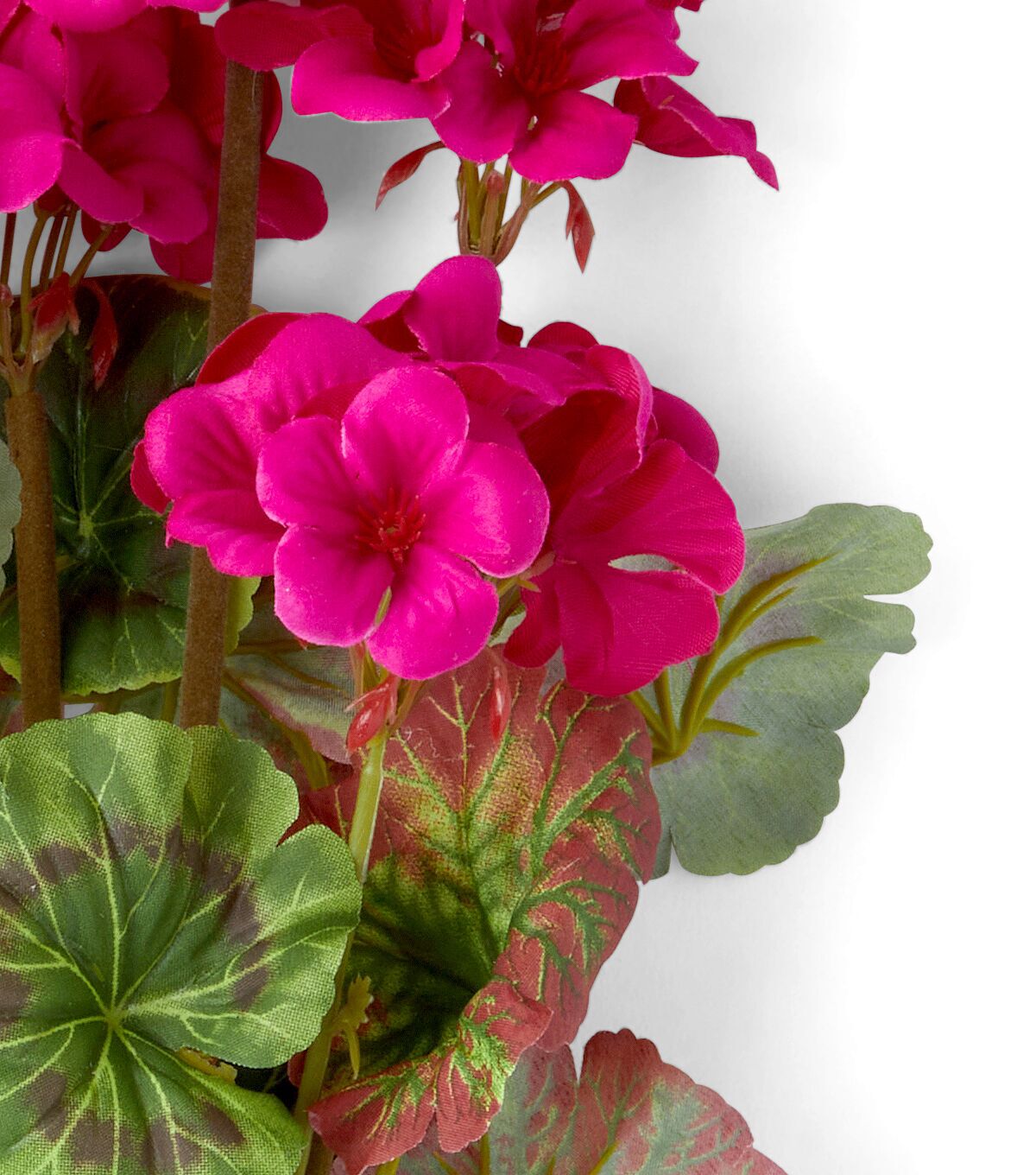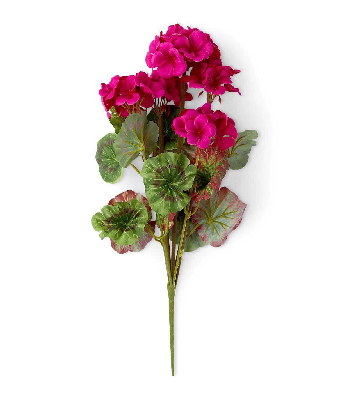 Spruce up your home decor this spring with the Spring Dark Pink Geranium Bush by Bloom Room. This pretty faux floral bush is crafted with geranium blossoms in dark pink and lovely double-hued leaves. Place it in a metal vase and display it on the entryway table. You can also team it with colorful floral stems for added charm.