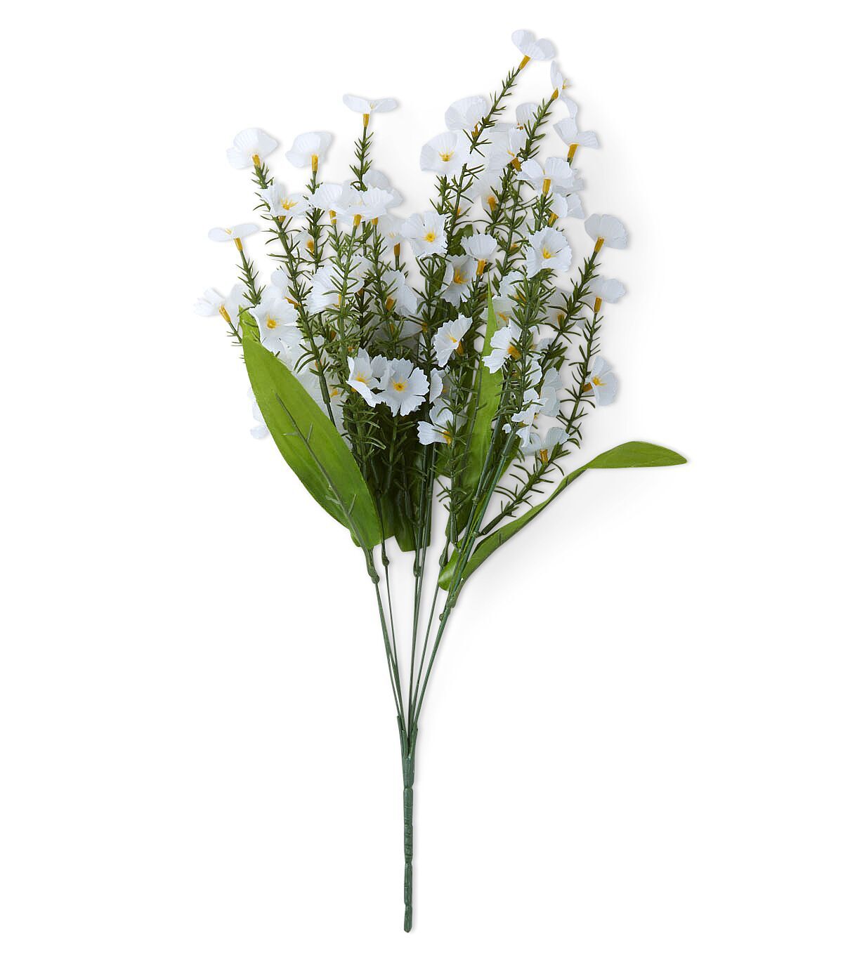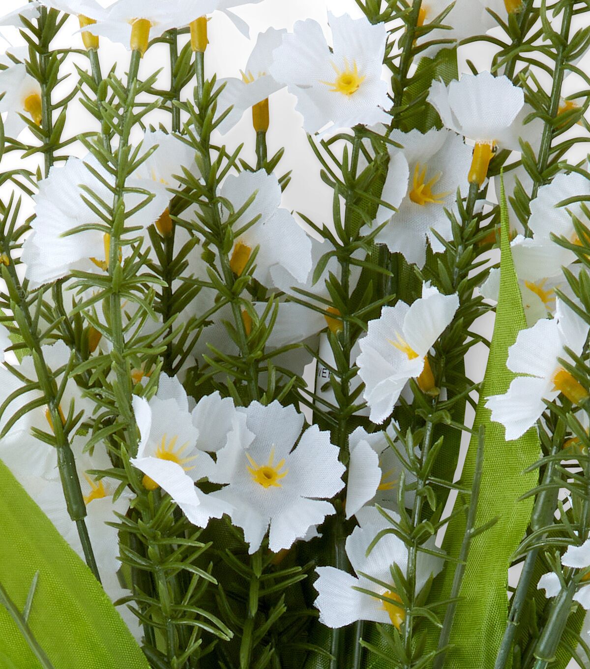 Spruce up your home interiors or event space with the Spring White Mini Flower Bush by Bloom Room. This lifelike floral bush is designed with mini flowers in white along with green leaves. You can showcase it as is in a pitcher vase on a windowsill or group it with other faux floral stems to create a gorgeous display.