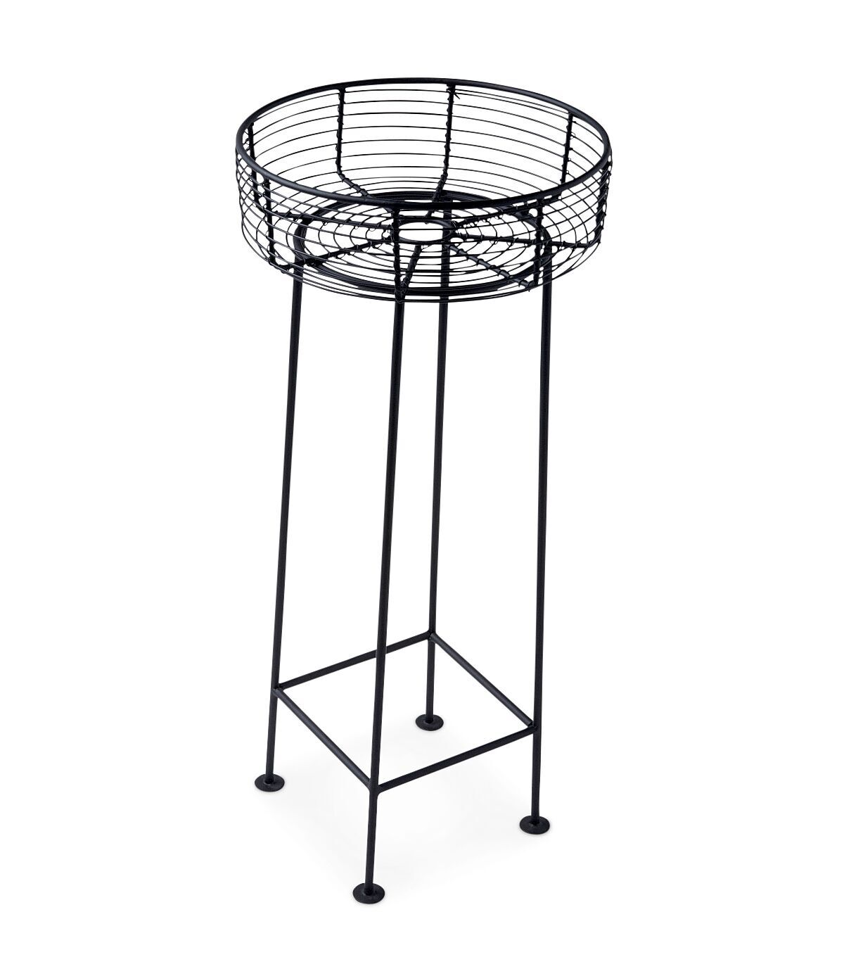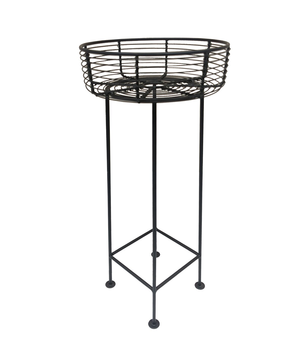 The Spring Matte Black Iron Wire Basket Plant Stand by Place & Time is just what you need to liven up a dull corner in your living room or the porch this spring. This wire basket plant stand sports a black shade and can be used to showcase colorful blooms or cacti. You can trim it with string lights for added visual appeal. It is powder-coated, made of steel and will last long.