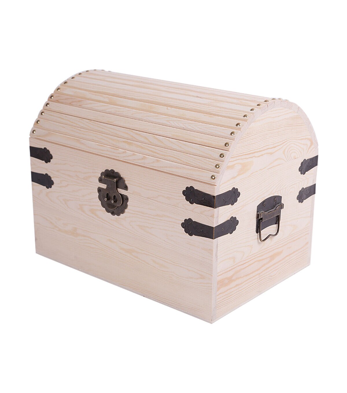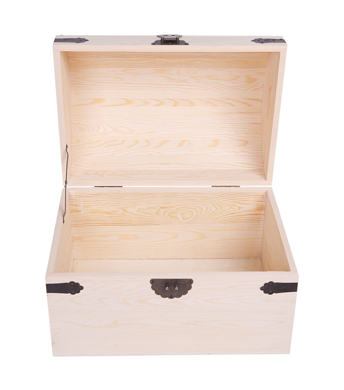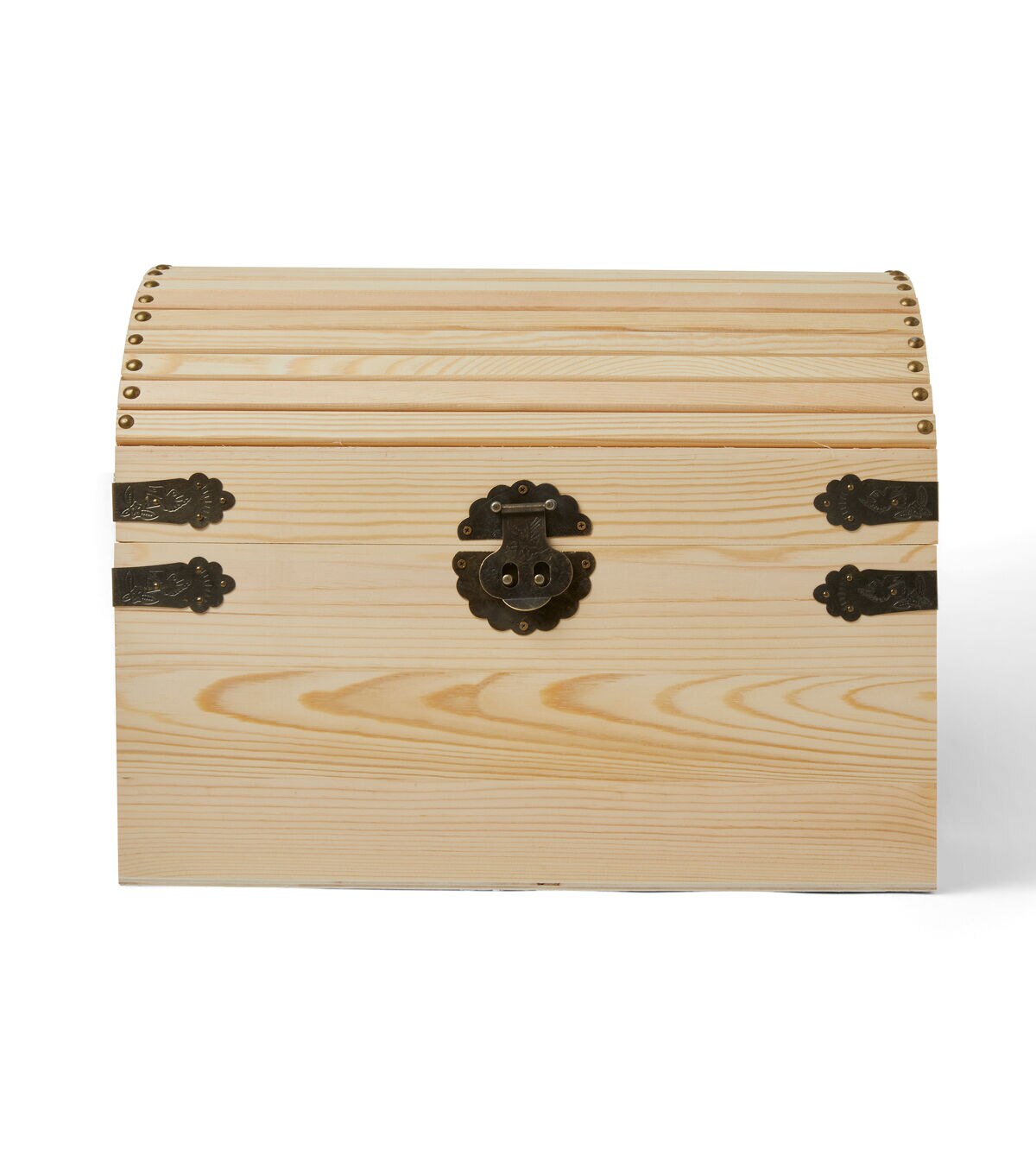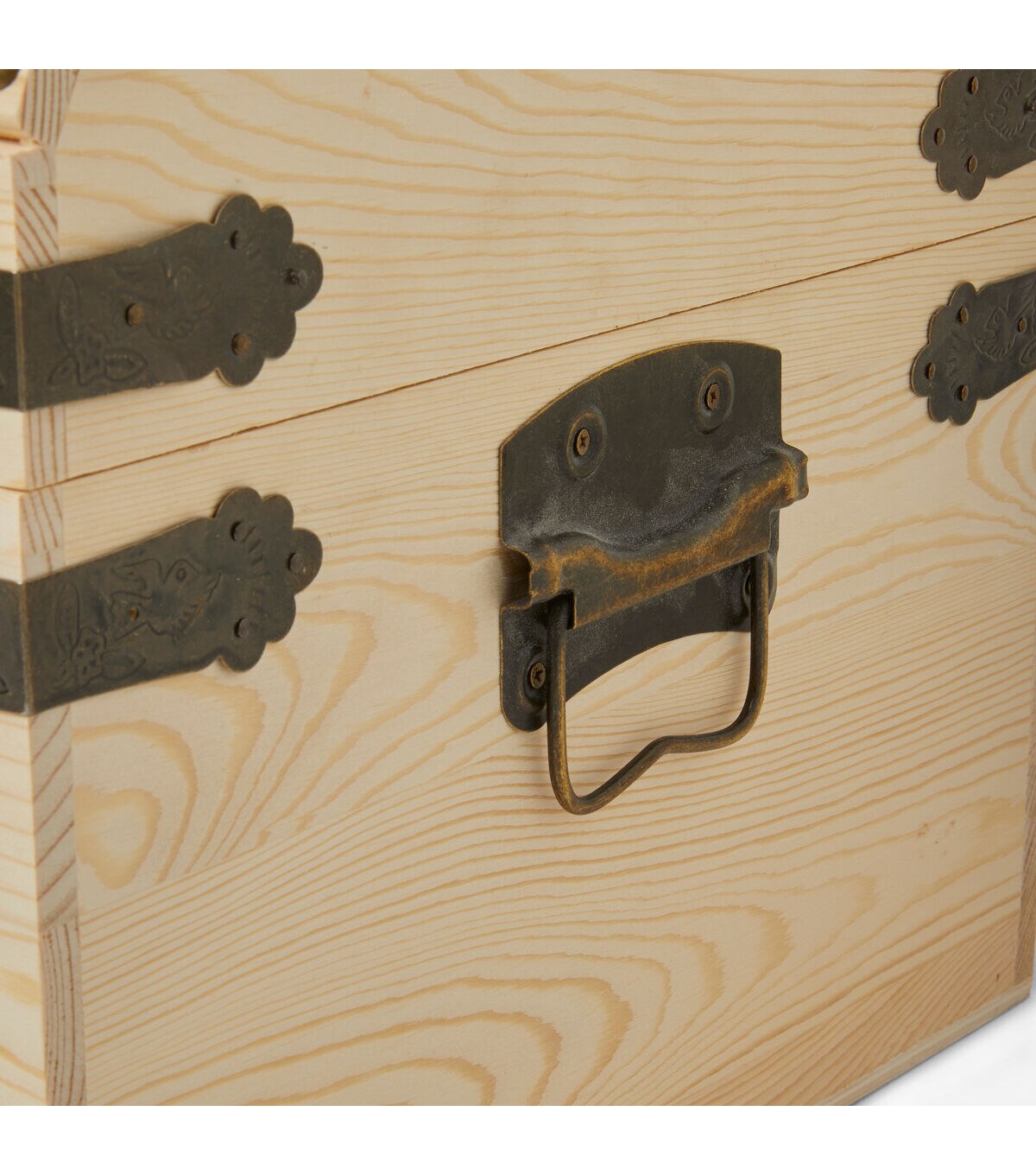 The Park Lane Wooden Trunk Storage Box will perfectly complement your rustic home decor. This large wooden trunk exudes vintage vibes with its metallic hardware. Stain or paint it to complete its look. Add the finished version to your bedroom and use it to keep linen, toys, mittens and more.